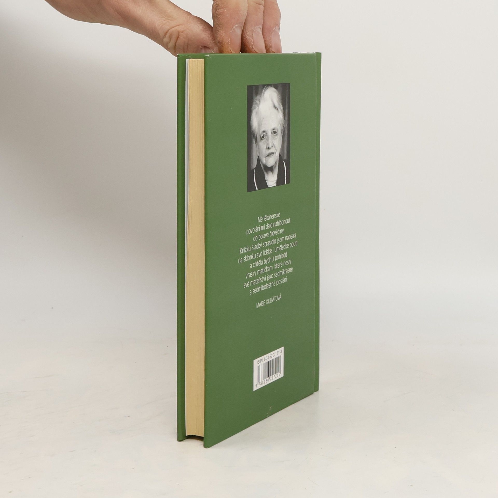 Mé lékárenské povolání mi dalo nahlédnout do bolavé člověčiny. Knížku Sladký strašidlo jsem napsala na sklonku své lidské i umělecké pouti a chtěla bych jí pohladit vrásky matičkám, které nesly své mateřství jako sedmikrásné a sedmibolestné poslání. Marie Kubátová.