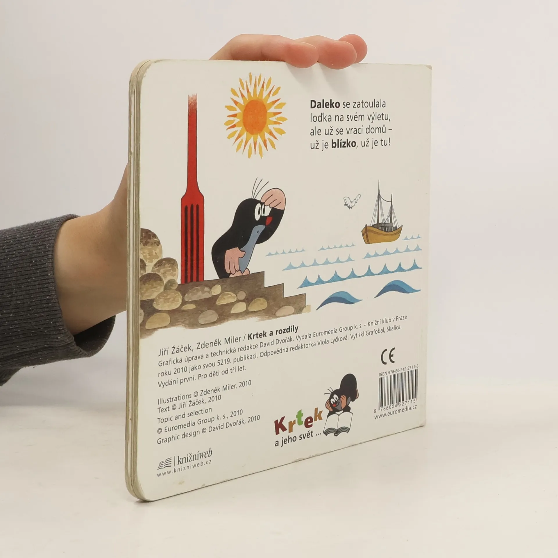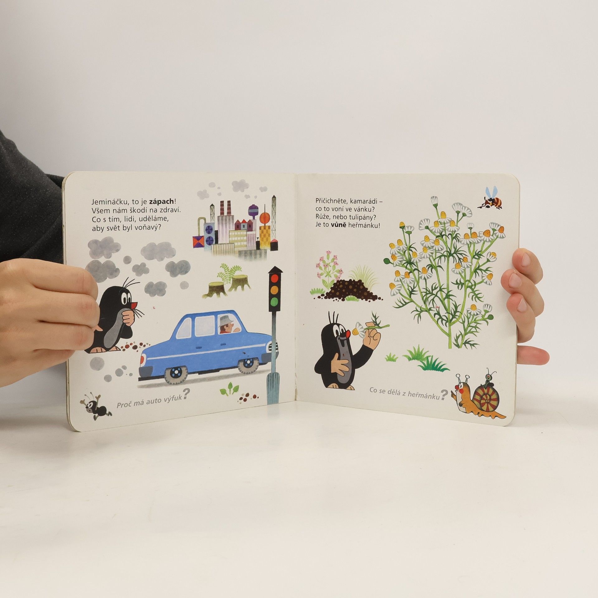Osmý z řady příběhů pro nejmenší čtenáře o tom, co všechno umí neposedný krteček a jeho zvířecí kamarádi, se zaměřuje na pět smyslů a na poznávání protikladů. Krtek dětem ukáže, co je daleko a co blízko, co voní, a co naopak zapáchá, co je sladké a co je slané.