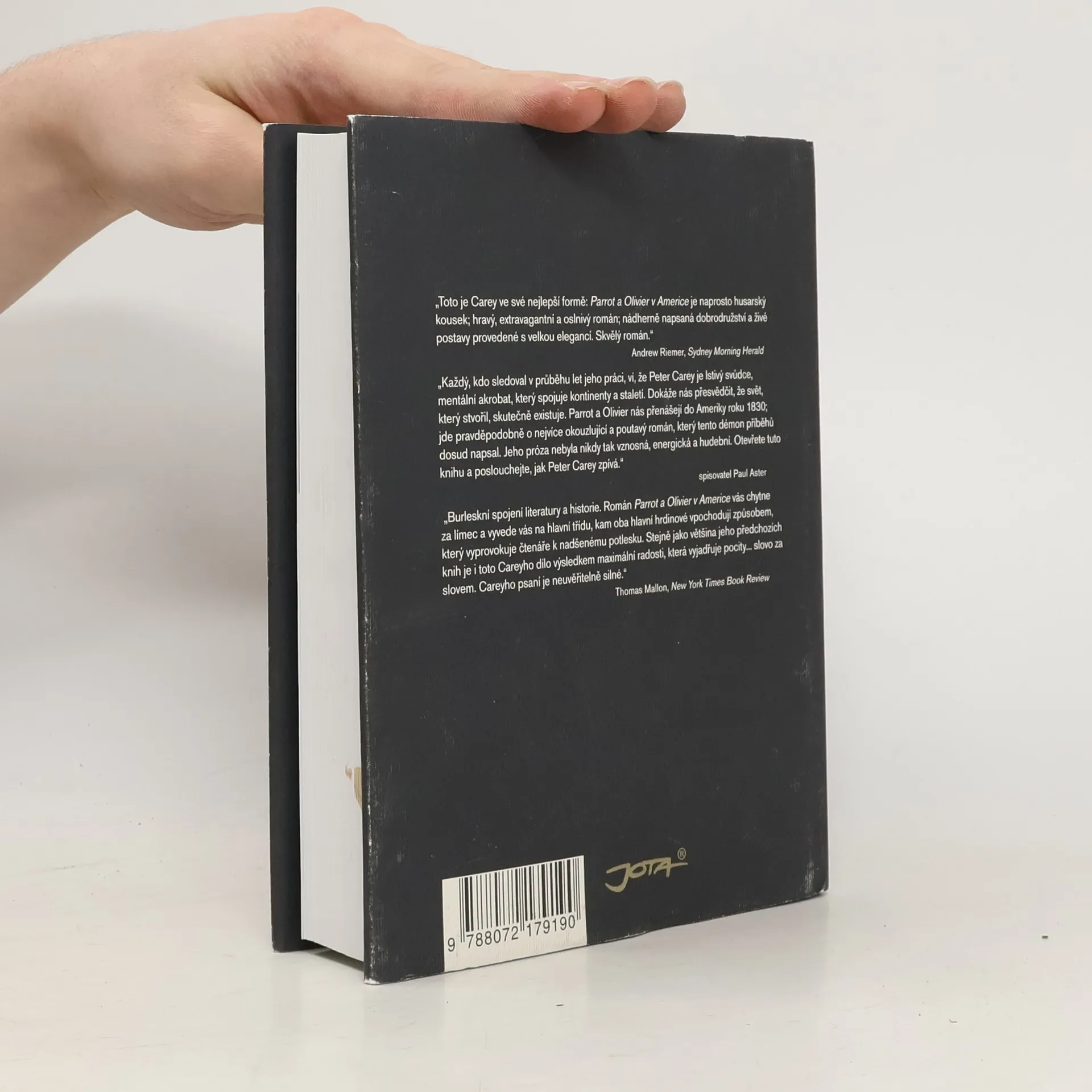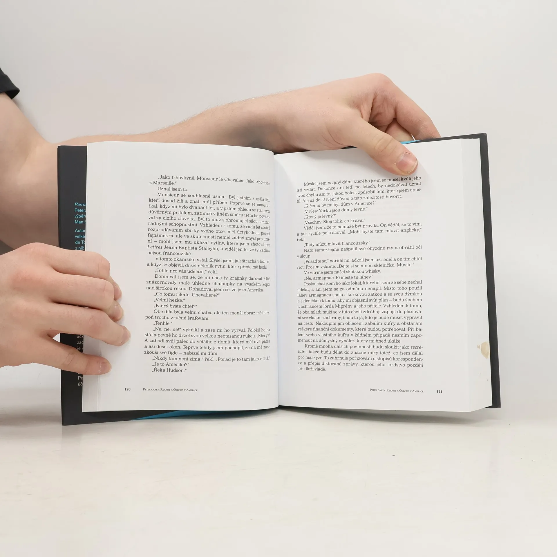 Může být politická fikce románem? Spisovatel Peter Carey oživuje velkého francouzského filozofa Alexise de Tocqueville a jeho cestu do Ameriky, z níž vzešlo dílo Demokracie v Americe - první velká studie o mravech, morálce a politice ve Spojených státech, prostřednictvím fiktivních postav Oliviera de Garmonta a Johna „Parrota“ Larrita, jeho sluhy a špicla zároveň. Olivier je syn francouzských šlechticů, kteří jen tak tak během revoluce nepřišli o hlavu. Je to nešťastník se špatným zrakem, chorobně opečovávaný matkou, snob, který má za to, že šlechta má absolutní právo povyšovat se nad každého. Parrot (nebo také papoušek) je naopak synem potulného anglického tiskaře, jako dvanáctiletý utíká do Paříže, kde se stává v Olivierově rodině sluhou. A když odjíždí Olivier do Nového světa studovat vězeňský systém, ač si chce ve skutečnosti jen zachránit krk, k pramalé radosti je Parrot vypraven s ním. Děj cesty je vyprávěn střídavě z perspektivy obou protagonistů jako pikareskní dobrodružství lásky a politiky na pozadí dějin staré vlasti a v perspektivě dobývání nových zemí. Navzdory okolnostem vzniká mezi oběma přátelství. Kniha Parrot a Olivier v Americe byla v loňském roce v užším výběru na nejvyšší britské literární ocenění Man Booker Prize.