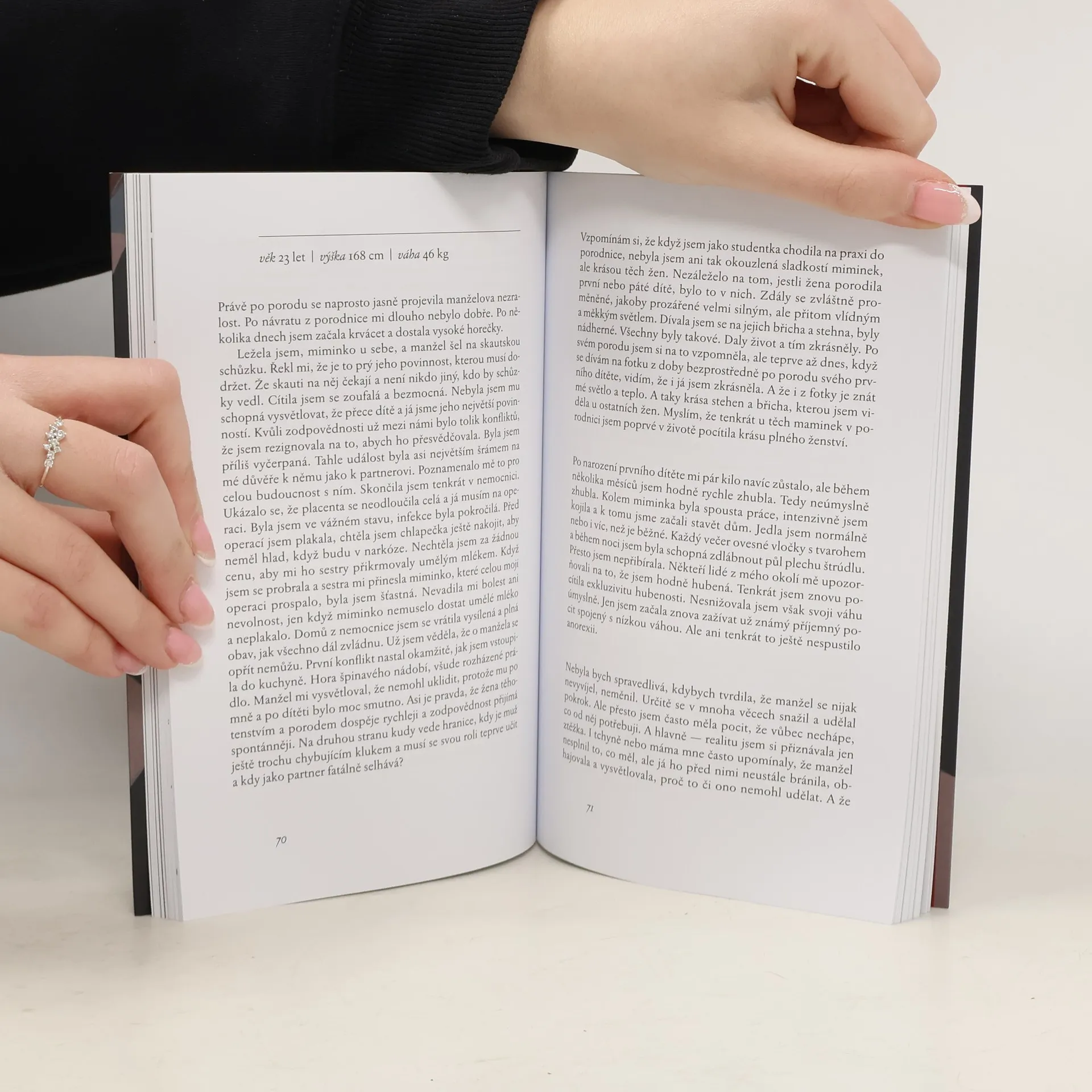 Petra Dvořáková přichází s vrstevnatým vyprávěním, jehož rámec tvoří zápas s mentální anorexií. S nevykalkulovanou otevřeností se dotýká složitých rodinných vazeb a traumat, milostného tápání a hledání útočiště v náhradním vztahu, který má až skandální přídech. Zachycuje provázanost rozvoje anorexie s mimořádně vážným onemocněním dítěte a střídavě úspěšnými pokusy najít pevný bod ve víře v Boha. Autorka také bez retuší pojednává o poměru dcery k matce jako určujícím vztahu, na jehož podkladě anorexie vzniká. Anorexii představuje jako neustálou snahu zakotvit v pravém ženství, které však uniká, a nepevné životní kontury se tak za jistých okolností promění v touhu po exkluzivní vyhublosti. Jde o svého druhu neurotický syndrom, který nakonec vyvstane jako jediná možnost, jak kontrolovat a ovládnout vlastní život. Autorka rozbíjí médii zjednodušeně prezentovaný a obecně zažitý obraz mentální anorexie coby hubnutí pro krásu, které se později vymkne kontrole a může se tragicky vymstít.