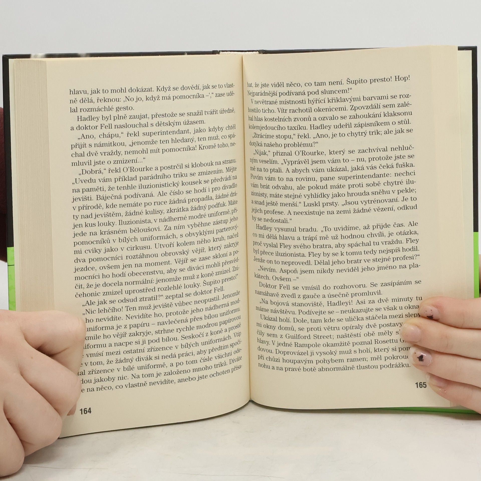 Detektivka s prvky strašidelného románu, která je považována za klasiku tzv. záhady zamčeného pokoje. V pracovně svého londýnského domu je zavražděn úctyhodný profesor Grimaud, jehož krátce předtím navštívil podivný iluzionista s požadavkem urovnání jakéhosi starého dluhu. Vrah, jak se zdá, unikl z dokonale zamčené a hlídané místnosti, aniž po sobě zanechal sebemenší stopu uvnitř nebo na souvislé sněhové pokrývce kolem domu. Řešení záhady a zejména motiv činu je třeba hledat v dávné, temné minulosti pana profesora... Klasická detektivka, v níž je důkladně rozebrána tzv. záhada zamčeného pokoje a možnosti jejího řešení. Pátrání se tu ujímá amatérský detektiv dr. Gideon Fell, který svým zevnějškem i názory nápadně připomíná autorův velký vzor, jednoho z otců detektivky G. K. Chestertona.