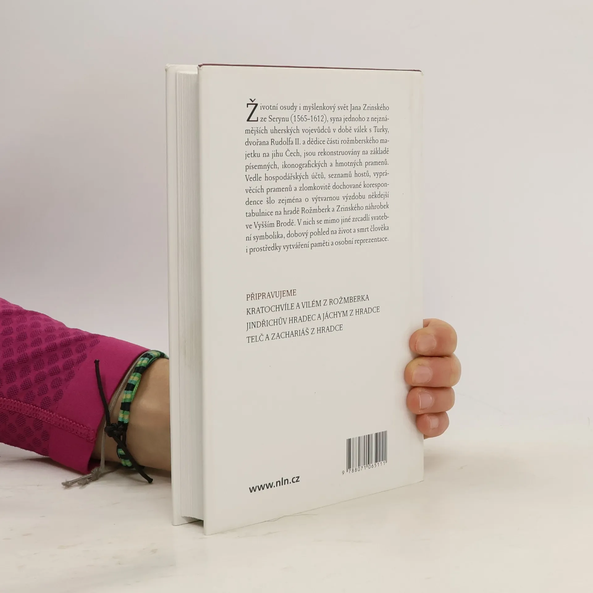 Životní příběh synovce posledních Rožmberků historiků Václava Bůžka a Pavla Krále a historika umění Ondřeje Jakubce je netradičním pokusem o biografii šlechtice přelomu 16. a 17. století. Životní osudy i myšlenkový svět Jana Zrinského (1565-1612), syna jednoho z nejznámějších uherských vojevůdců v době válek s Turky, dvořana Rudolfa II. a dědice části rožmberského majetku na jihu Čech, jsou rekonstruovány na základě písemných, ikonografických a hmotných pramenů. Vedle hospodářských účtů, seznamů hostů, vyprávěcích pramenů a zlomkovitě dochované korespondence šlo zejména o výtvarnou výzdobu někdejší tabulnice na hradě Rožmberk a Zrinského náhrobek ve Vyšším Brodě. V nich se mimo jiné zrcadlí svatební symbolika, dobový pohled na život a smrt člověka i prostředky vytváření paměti a osobní reprezentace, které zastřešuje koncept ctnostného života Jana Zrinského jako křesťanského bojovníka. Podobný přístup, který umožní poučeným i laickým návštěvníkům zámeckých sídel pochopit promyšlenou symboliku jejich ikonografických programů i rozměry intelektuálního světa jejich majitelů, se nabízí například u Kratochvíle Viléma z Rožmberka, Jindřichova Hradce Jáchyma z Hradce či Telče Zachariáše z Hradce.