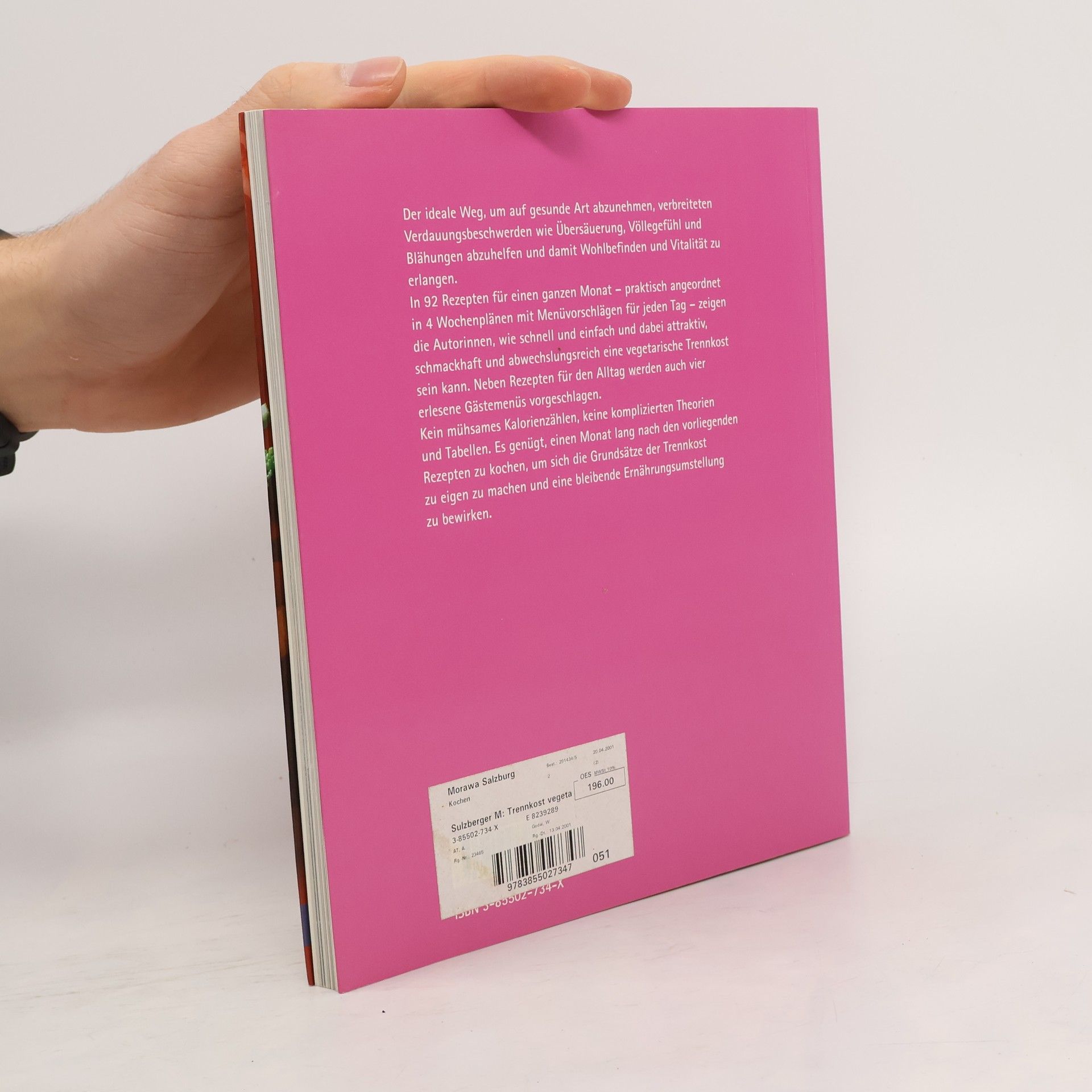 Trennkost – eine Ernährungsweise, die auf der Trennung von eiweisshaltigen und kohlehydrathaltigen Nahrungsmitteln innerhalb ein und derselben Mahlzeit beruht – stellt für viele die 'Ernährung der Zukunft' dar. Sie wirkt sich positiv auf den Stoffwechsel und das Säure-Basen-Gleichgewicht aus. Sie ist vollwertig und rohkostbetont. Trennkost ist damit der ideale Weg, um auf gesunde Art abzunehmen, Verdauungsbeschwerden wie Übersäuerung, Völlegefühl und Blähungen abzuhelfen und damit Wohlbefinden und Vitalität zu erlangen. In 92 vegetarischen Rezepten für einen ganzen Monat – praktisch angeordnet in 4 Wochenplänen mit Menüvorschlägen für jeden Tag – zeigen die Autorinnen, wie schnell und einfach, dabei attraktiv, schmackhaft und abwechslungsreich Trennkost sein kann. Neben Rezepten für den Alltag werden auch vier Gästemenüs vorgeschlagen. Das Buch verzichtet bewusst auf mühsames Kalorienzählen, auf komplizierte Theorien und Tabellen. Es genügt, einen Monat lang nach den vorliegenden Rezepten zu kochen, um sich die Grundsätze der Trennkost zu eigen zu machen und eine bleibende Ernährungsumstellung zu bewirken. Aus dem Inhalt: Was ist Trennkost? Weshalb Trennkost? Wie sieht Trennkost in der Praxis aus? Aufteilungstabelle Das Frühstück Der tägliche Salatteller 92 vegetarische Rezepte Monatsmenüpläne