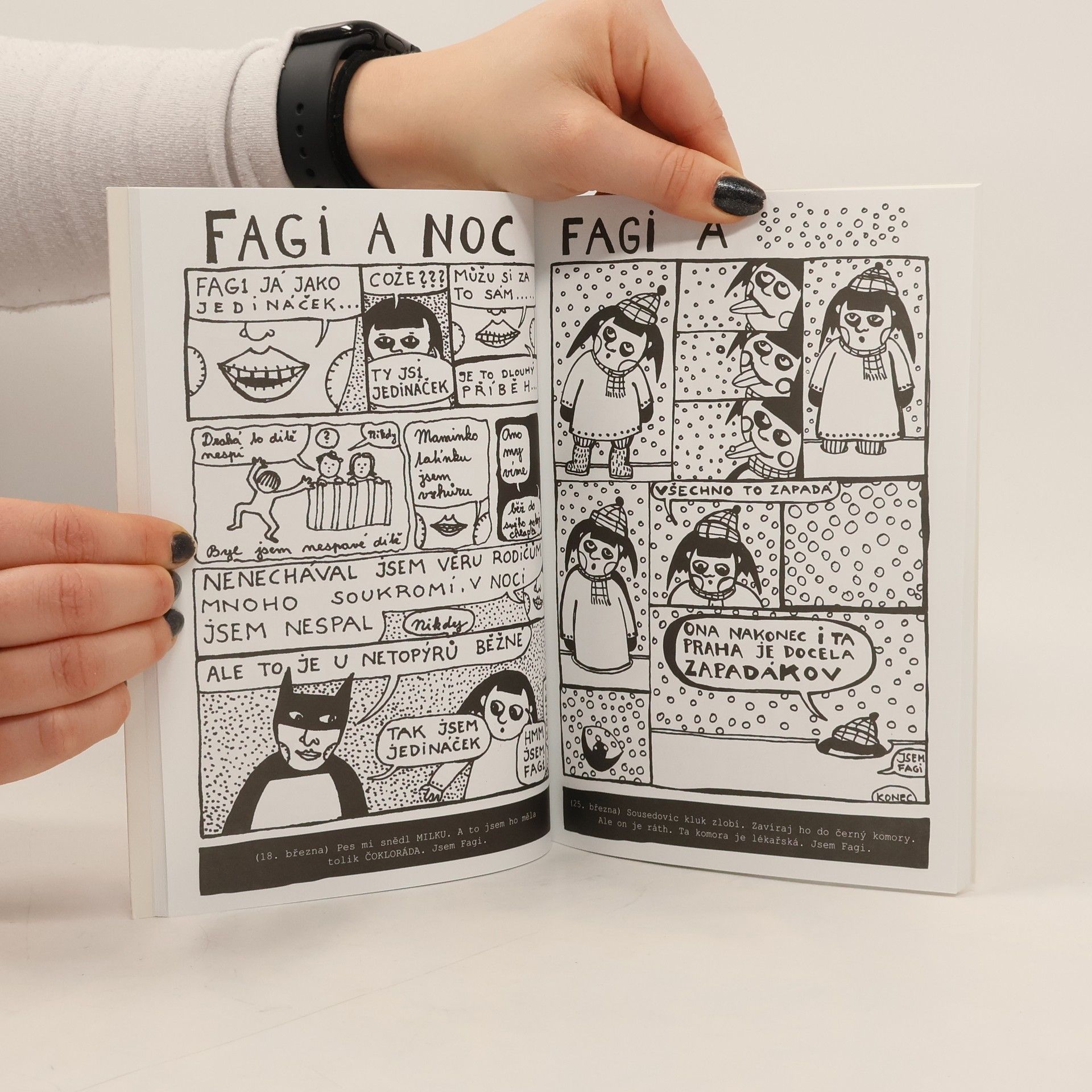 Fagi je virtuální komiksová celebrita z Facebooku. Od ledna 2010 dává své komiksy na Facebook skoro každý druhý den. Knižní vydání těchto příběhů určené hlavně starším dětem a mládeži. Fagi je třináctiletá holčička, která žije ve světě jako my. Má protivné sourozence jako my. Divné nadřízené jako my. Milují ji nepřitažliví mladíci, které ona nechce. Ona miluje arogantní mladíky, kteří nechtějí ji. Hodně si o sobě myslí, jako my. Ale oproti nám má velkou výhodu
