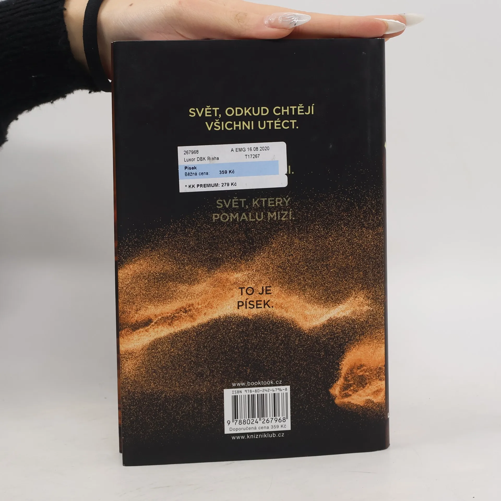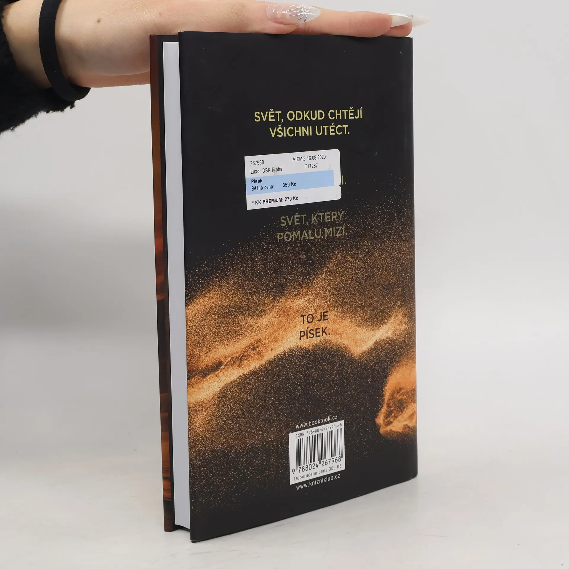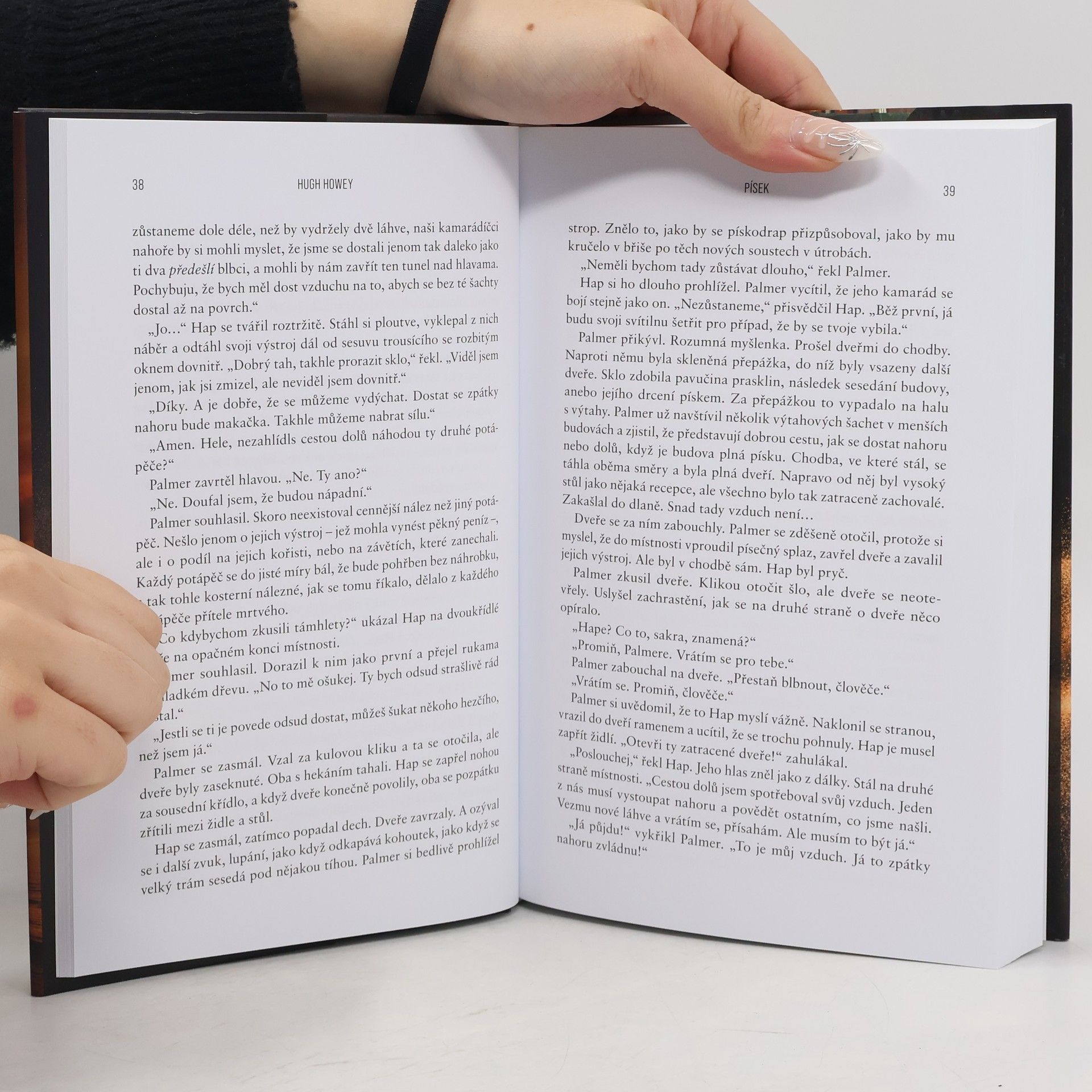 Ztracený otec. Opuštěná rodina. Zapomenutý svět. Vítejte v Písku, dalším apokalyptickém thrilleru Hugha Howeyho, autora fenomenální bestsellerové trilogie Silo, Turnus a Prach. Než se do něj vnoříte, pořádně se nadechněte – může to být naposledy. Starý svět byl zasypán. Nový teď existuje jen na vršcích pohyblivých dun. V zemi skučícího větru a pekelného, všudypřítomného písku se čtveřice sourozenců pokouší dát znovu dohromady svou rodinu. Jejich otec pracoval jako písečný potápěč, jeden z těch, kdo z hlubin pouště přináší pozůstatky starého světa, které lidem pomáhají přežít. Ale otec zmizel. A svět, ve kterém své děti zanechal, nejspíš brzy zmizí taky…