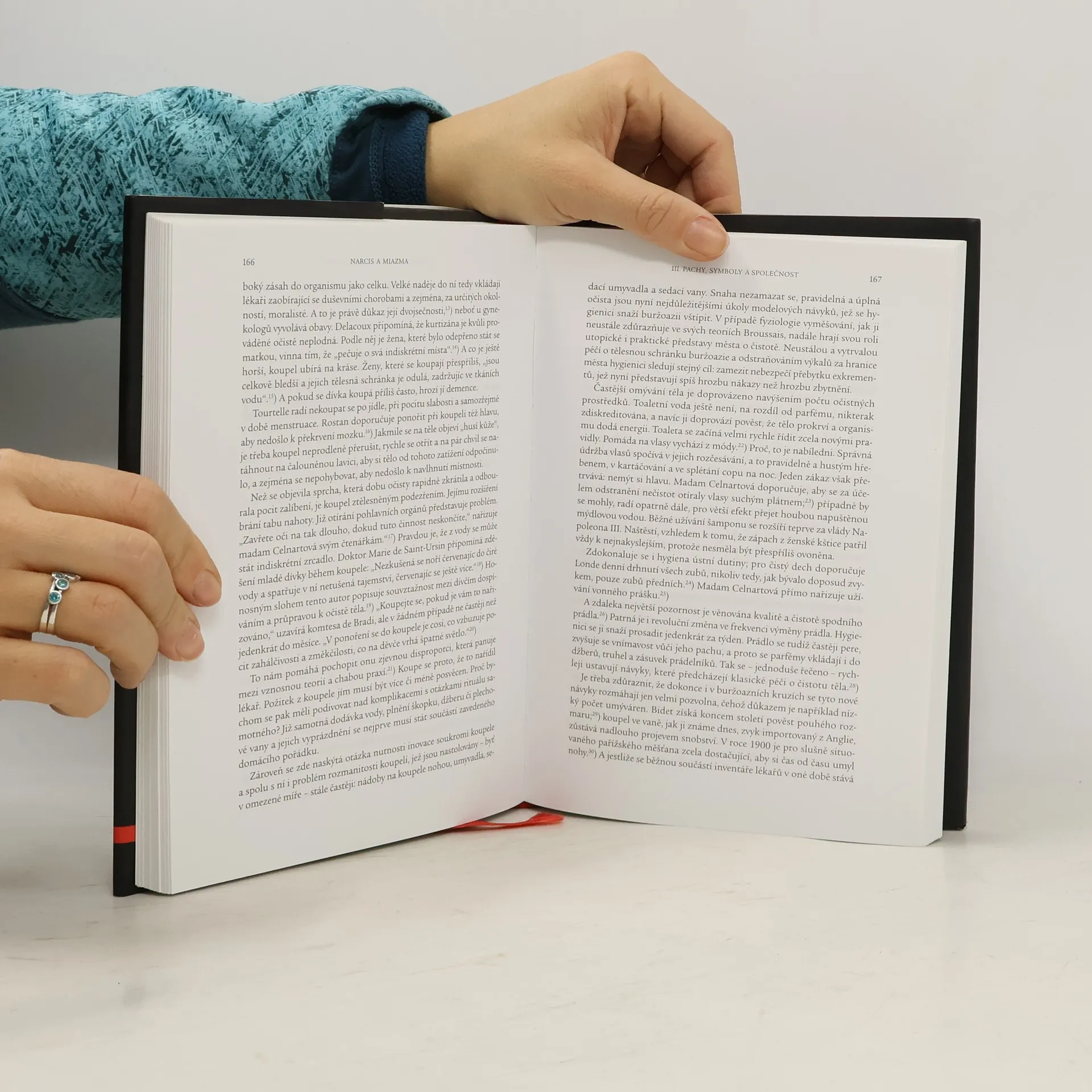 Podtitul: Pach a společenské představy 18. a 19. století Francouzský historik Alain Corbin dokázal jako jeden z prvních aplikovat metodické postupy školy Annales na moderní společnost 18. a 19. století. Jeho prozatím nejuznávanější práce je věnována zdánlivě odtažitému tématu – dějinám pachů. Právě na dějinách užívání lidských smyslů, na vztahu k vlastnímu okolí však zachycuje velké civilizační změny, k němž docházelo v různých sociálních prostředích. Původně téměř homogenní společnost se totiž podle jeho názoru začíná pod vlivem nových hygienických zvyklostí, užívání parfémů či naopak nových druhů kanálů a záchodů radikálně měnit a „čistí“ se stávají citliví, až přecitlivělí k masám „špinavých“. Flaubert nemůže spát, protože se nadýchal pachu dělníků – v této zkratce se odrážejí nové postoje elit, jež se začínají štítit a stranit spodiny. V souvislosti s tím se dle Corbina mohutně rozvíjí narcisismus, neurotické představy a nový význam získávají i pojmy jako delikátnost, soukromý prostor a komfort.