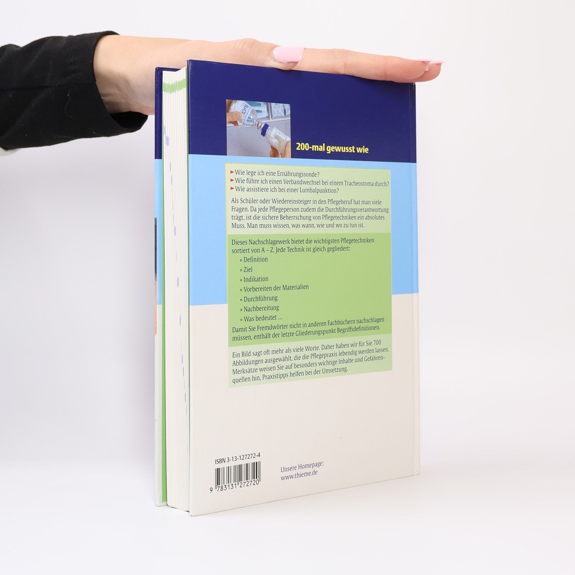 Pflegetechniken von A-Z Ihr kompetenter Praxisbegleiter - Das optimale Nachschlagewerk für die #praktische Pflege#, für alle 3 Berufsgruppen und für pflegende Angehörige - Alphabetisch sortiert von A bis Z - Pflegehandlungen blitzschnell nachschlagen - Kurze, präzise Beschreibung der einzelnen Handlungsschritte - Stringenter Aufbau der Handlungsanweisungen für eine optimale Orientierung innerhalb der einzelnen Pflegetechniken - Fotoserien mit Schritt-für-Schritt Anleitungen zeigen, wie es gemacht wird - Einheitliche Gliederung aller Kapitel zur raschen Orientierung - Plus: Video-DVD mit 72 Filmen zu den wichtigsten Pflegehandlungen
