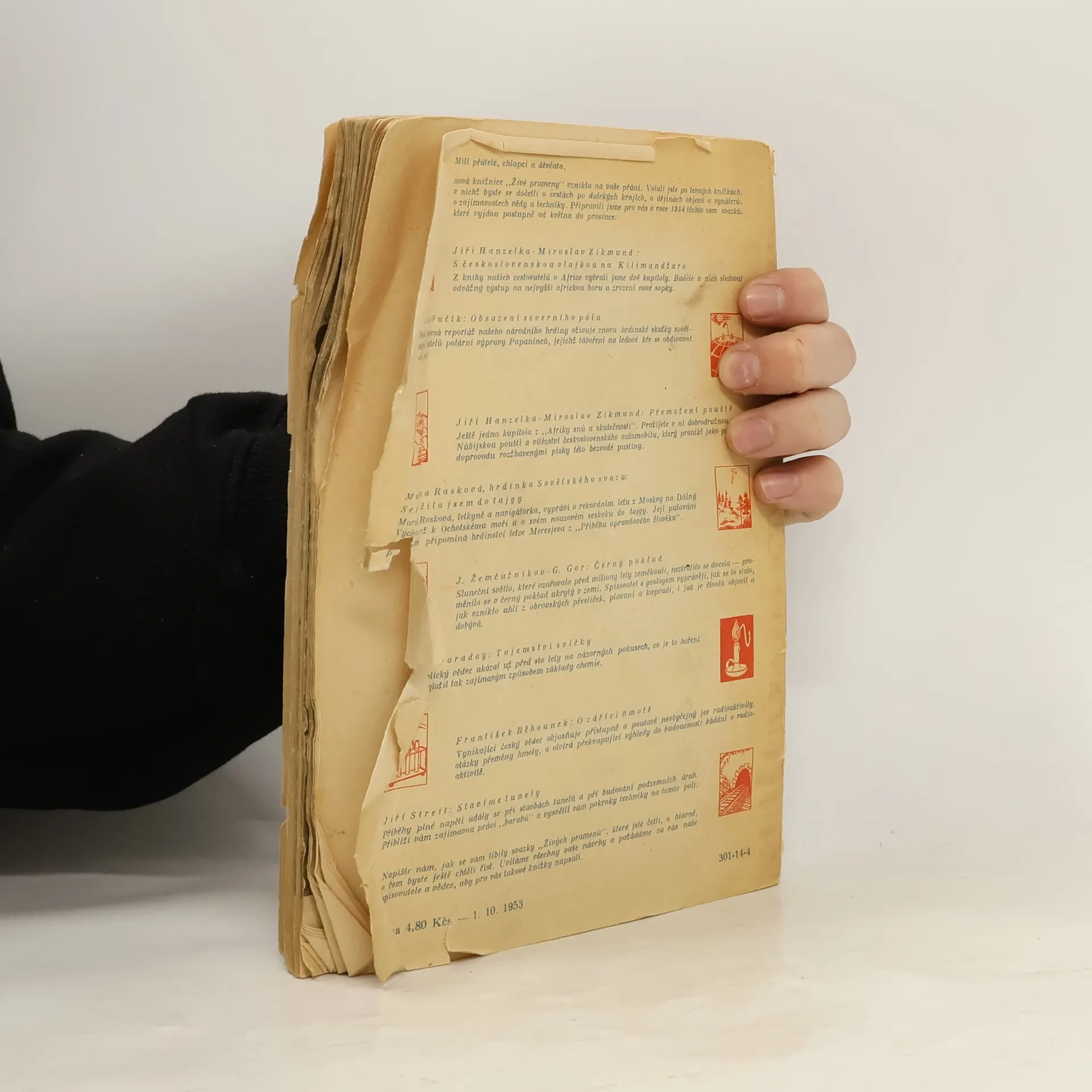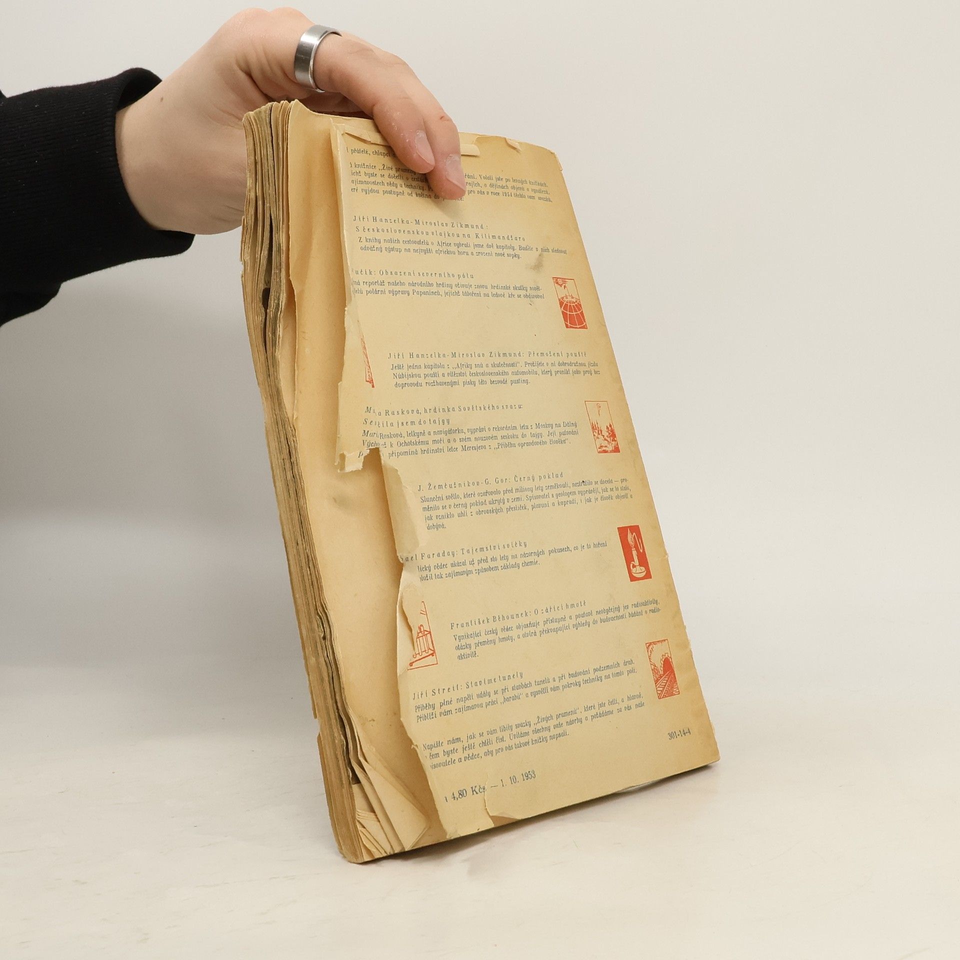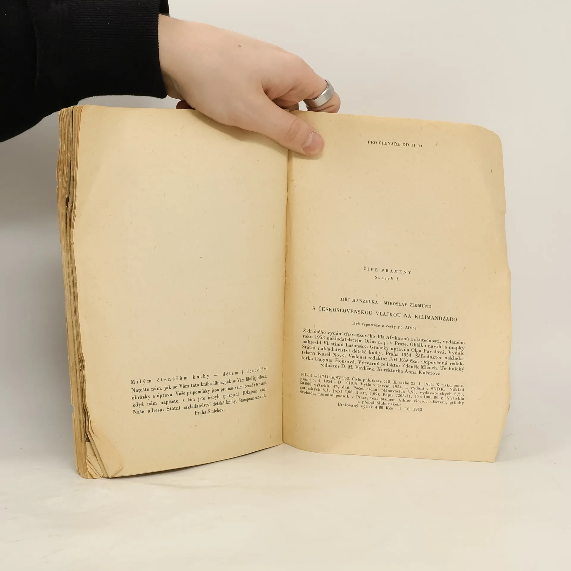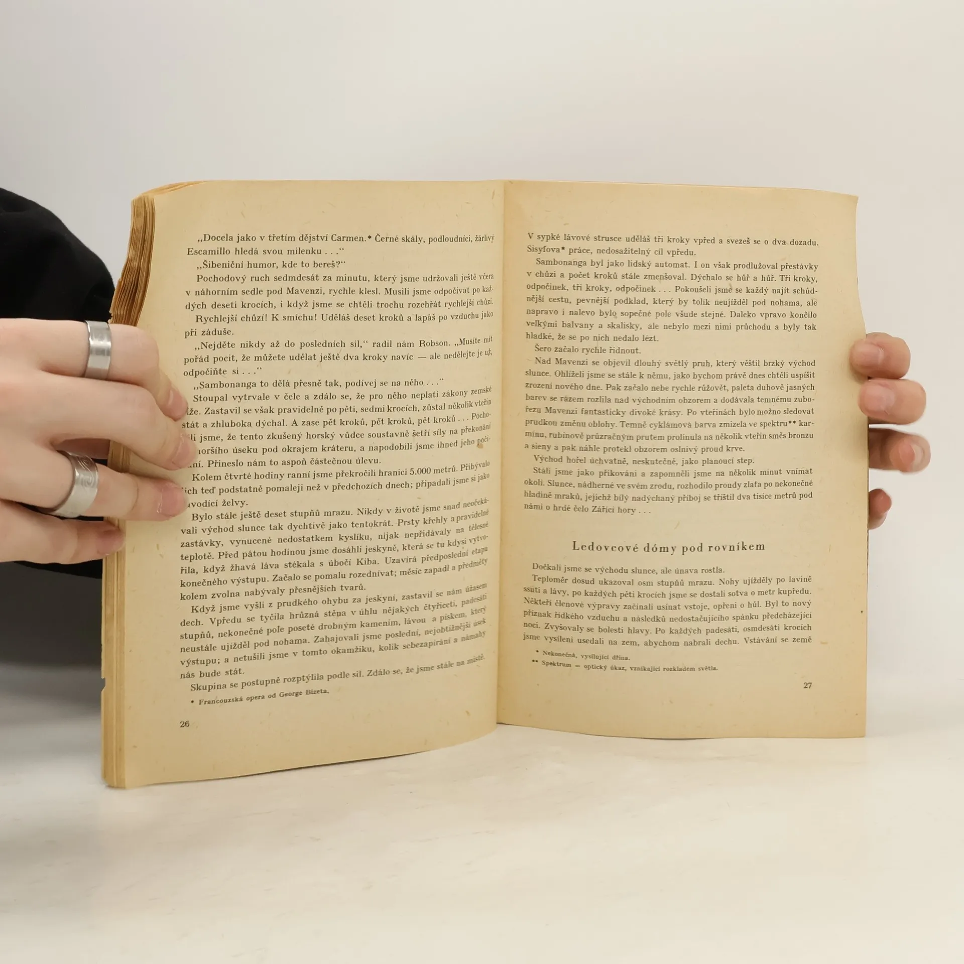 První cestopisná reportáž líčí průjezd rezervací, která se táhne z pohraniční oblasti Tanganjiky (dnes Tanzanie) na úpatí Kilimandžára, k nejvyšší horské skupině na okraji východoafrického příkopu. Pokus o výstup na Kilimandžáro započal v Aruše (Arusha). Osmnáctičlenná karavana vyrazila z Maranga 25.ledna a 28. ledna 1948 zavlála nad Kibem československá vlajka. Druhá reportáž líčí čtrnáctidenní zastávku na březích klidného jezera Kivu začátkem března 1948. Během pobytu v sopečné oblasti na území mezi tehdy Belgickým Kongem a mandátním územím Ruanda Urundi(dnes Rwanda, Zair), zažili cestovatelé zrození nové sopky a nové africké hory. V reportáži zachytili a vyfotografovali zápas a střetnutí dvou živlů - žhavé lávy a vody jezera Kivu.