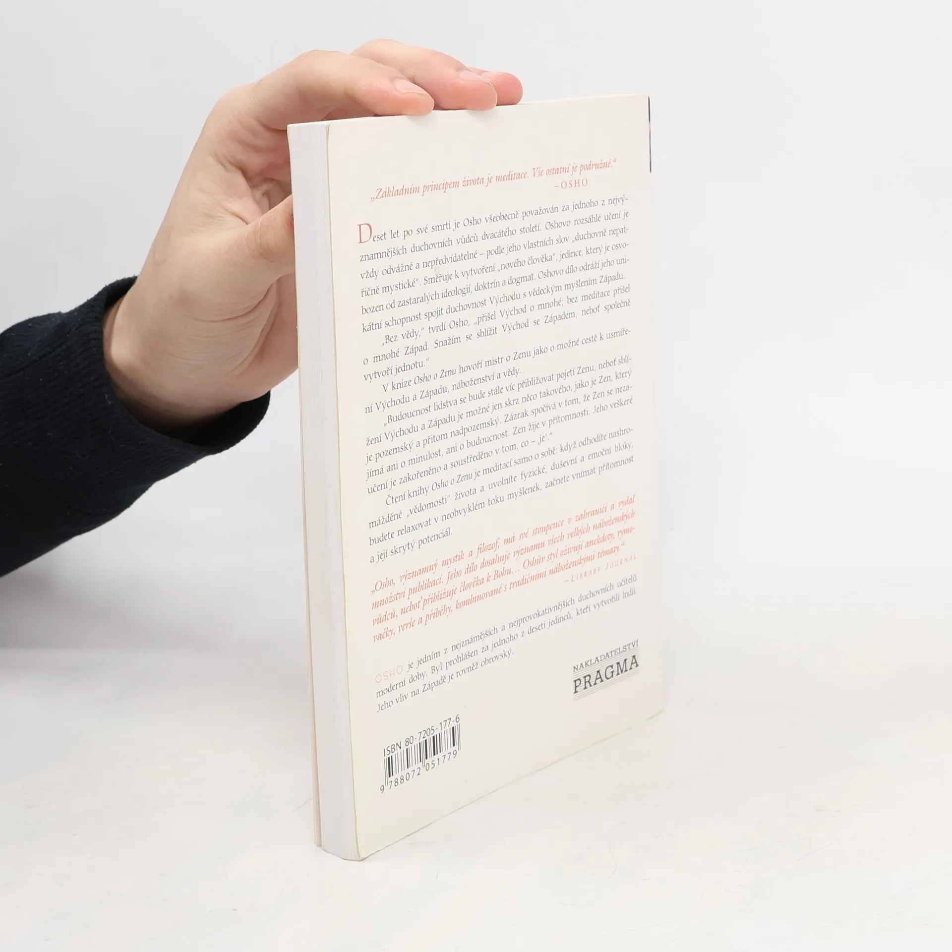 Oshovo rozsáhlé učení je vždy odvážné a nepředvídatelné - podle jeho vlastních slov \"duchovně nepatřičně mystické\". Směřuje k vytvoření \"nového člověka\", jedince, který je osvobozen od zastaralých ideologií, doktrín a dogmat. Oshovo dílo odráží jeho unikátní schopnost spojit duchovnost Východu s vědeckým myšlením Západu. \"Bez vědy,\" tvrdí Osho, \"přišel Východ o mnohé; bez meditace přišel o mnohé Západ. Snažím se sblížit Východ se Západem, neboť společně vytvoří jednotu.\" V knize Osho o Zenu hovoří mistr o Zenu jako o možné cestě k usmíření Východu a Západu, náboženství a vědy. \"Budoucnost lidstva se bude stále víc přibližovat pojetí Zenu, neboť sblížení Východu a Západu je možné jen skrz něco takového, jako je Zen, který je pozemský a přitom nadpozemský. Zázrak spočívá v tom, že Zen se nezajímá ani o minulost, ani o budoucnost. Zen žije v přítomnosti. Jeho veškeré učení je zakořeněno a soustředěno v tom, co je. Čtení knihy Osho o Zenu je meditací samo o sobě: když odhodíte nashromážděné \"vědomosti\" života a uvolníte fyzické, duševní a emoční bloky, budete relaxovat v neobvyklém toku myšlenek, začnete vnímat přítomnost a její skrytý potenciál.