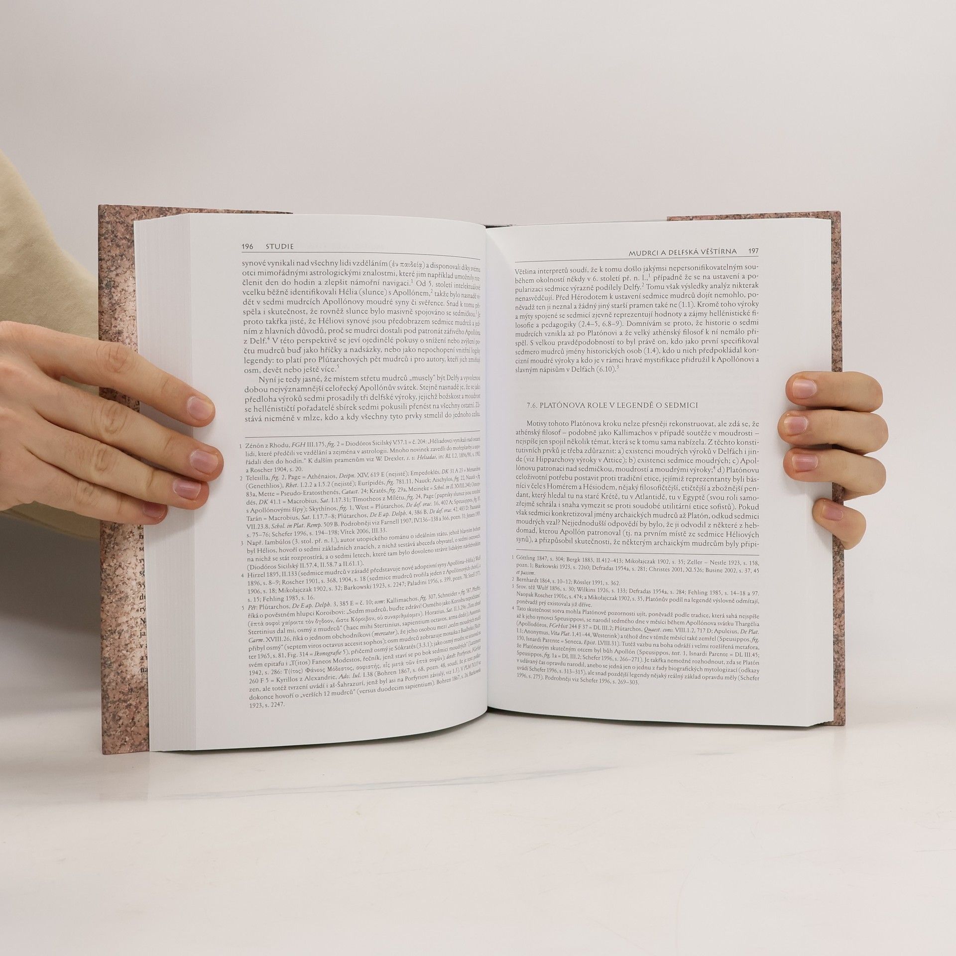 Sedmice mudrců, kteří působili v Řecku archaické doby a mezi něž byli mimo jiné řazeni i slavný filosof Thalés z Mílétu a athénský mudrc a zákonodárce Solón, reprezentuje formu moudrosti, která se projevovala zejména stručnými sentencemi s morálním podtextem. Nová studie Tomáše Vítka, který je mimo jiné autorem třísvazkové monografie Empedoklés, zpracovává vyčerpávajícím způsobem veškerý dostupný materiál o sedmi mudrcích, i když se uchoval v různých žánrech a režimech řeči. Mapuje složení sedmice a okolnosti jejího formování, legendu o vzájemném soupeření v moudrosti a povahu i dobu vzniku výroků, které jí byly přisuzovány. Autor dále rozebírá úlohu Apollóna a delfské věštírny v profilaci a prosazování typu moudrosti, který se se sedmi mudrci pojil. Srovnává také výroky mudrců a jejich sbírky s ostatními řeckými i orientálními mudroslovnými soubory a analyzuje pozadí, z něhož vyrůstalo přesvědčení o posvátnosti čísla sedm. Druhá část knihy obsahuje řecké vydání a zrcadlový český překlad všech důležitých zpráv o sedmici včetně veškerých dochovaných výroků a sbírek sedmi. Nechybí ani obrazová příloha ukazující, jak si sedmici mudrců představovali v antice, srovnávací rejstřík všech výroků a rozsáhlá bibliografie aspirující na úplnost.