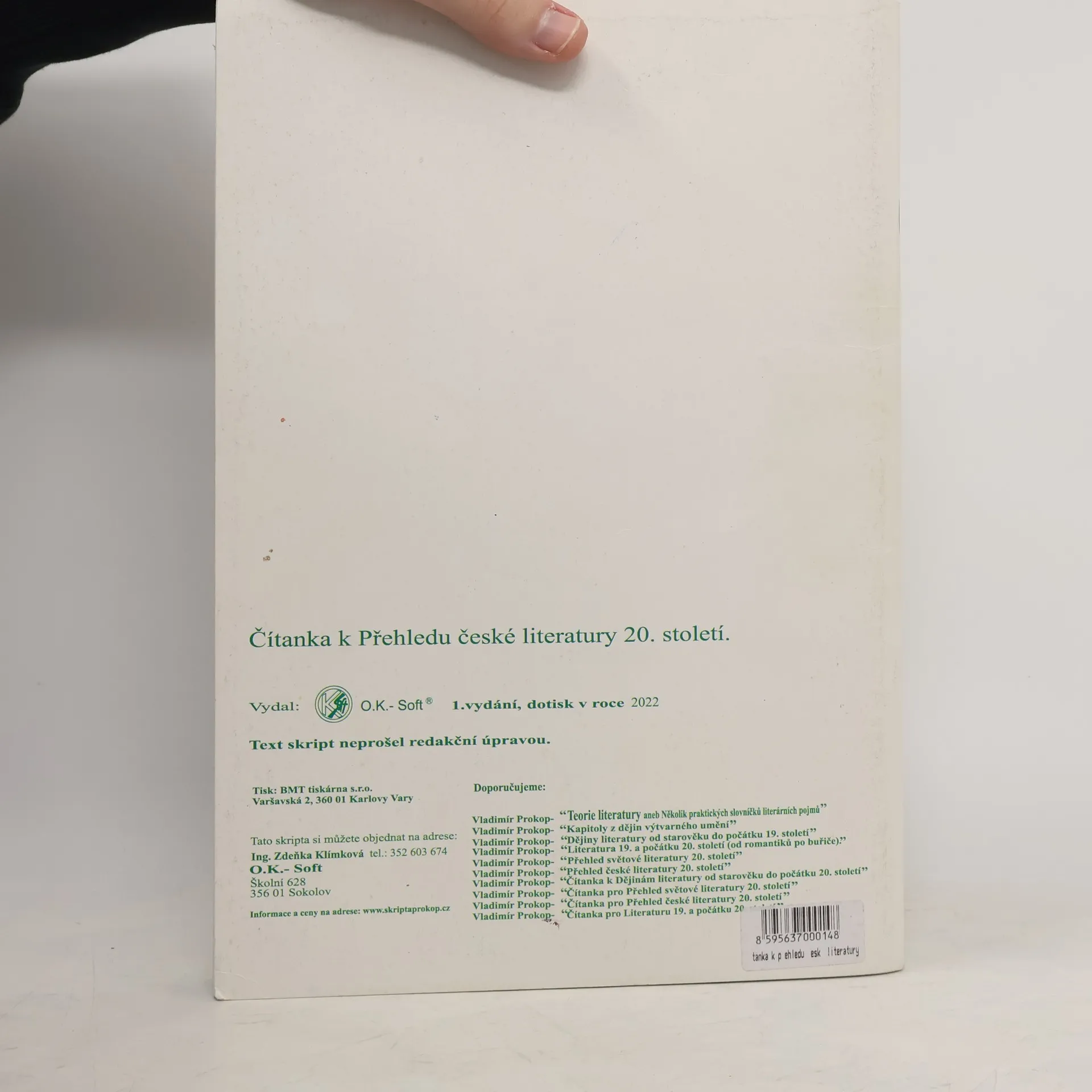 Tato čítanka je koncipována tak, aby vytvářela organický celek s publikací Přehled české literatury 20. století. Je proto logické, že nejen výběr, ale i chronologické řazení ukázek byly podřízeny tomuto titulu. Zcela záměrně nejsou v čítance zbytečně dlouhé prozaické texty, jejich rozsah respektuje časové možnosti v hodině českého jazyka. Otázky a náměty k diskusi, které doprovázejí každý celek, nejsou dogmatem, vnímejte je proto, prosím, pouze jako užitečnou pomůcku při výuce. Celá čítanka byla determinována snahou, aby, pokud to nebude nezbytně nutné (například u meziválečných směrů), nebyl jeden autor tříštěn do více kapitol. Proto se může stát, že datace ojedinělých textů není v souladu se začleněním do kapitoly. Jakožto učitel považuje autor tuto skutečnost za daleko menší zlo než "rozpitvat" spisovatele do nepřehledného množství oddílů. Časově nenáročné texty, obsahy všech uvedených prozaických děl, nespočet úkolů a námětů k diskusi.