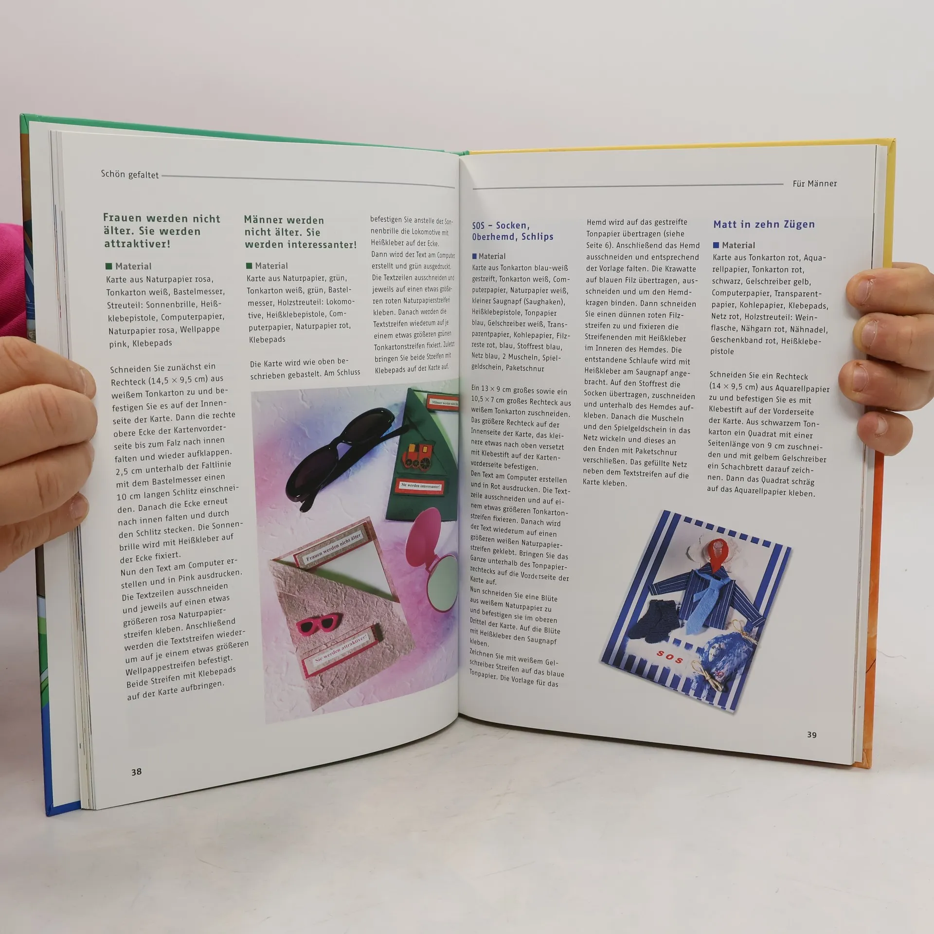 Ob der Adressat fünf oder sechzig Jahre alt ist, ob er Süßigkeiten oder Lavendeldüfte liebt, ob er im Sommer oder im Winter, im Zeichen des Skorpion oder des Löwen geboren ist - Sabine Millers Kartenideen eignen sich für jedes Alter und jeden Geschmack! Alle Karten sind anhand der genauen Vorlagen schnell nachzuarbeiten. Das normale Briefporto reicht für die Beförderung der Karten aus.