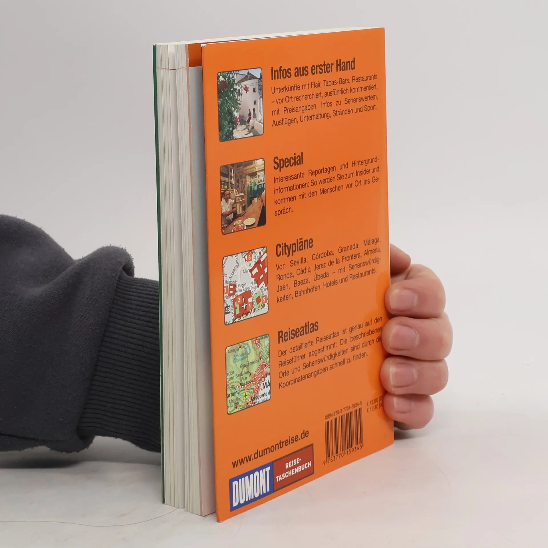 Eine Reise durch Andalusien führt Sie zu den bedeutendsten Kulturdenkmälern maurischer Zeit, wie der Alhambra in Granada, der Moschee von Córdoba und der Giralda in Sevilla. Entdecken Sie die malerischen Buchten und Strände des Mittelmeers und Atlantiks sowie die atemberaubenden Landschaften der andalusischen Sierras, geprägt von jahrhundertealten Olivenbäumen und weißen Dörfern, wo ländliche Ruhe die Zeit stillstehen lässt. Erfahren Sie, wo Sie authentischen Flamenco genießen, lebhafte Fiestas oder besinnliche Wallfahrten erleben und köstliche Tapas sowie andalusischen Wein probieren können. Jedes DUMONT Reise-Taschenbuch enthält einen detaillierten Atlas, der Reiseführer-Text und Karten durch praktische Seiten- und Koordinatenangaben verbindet, sodass Sie schnell die gewünschten Informationen finden. Zudem bietet das Buch ausgewählte Tipps zu Unterkünften, Restaurants, Shopping, Nachtleben und Freizeitaktivitäten, ergänzt durch Piktogramme für eine einfache Orientierung. Im Kapitel „Tipps für Ihren Urlaub“ finden Sie Antworten auf wichtige Fragen zur besten Reisezeit, zur Wahl zwischen Pauschal- und Individualreisen sowie zu den bekanntesten Sehenswürdigkeiten, um Ihre Reise optimal vorzubereiten.