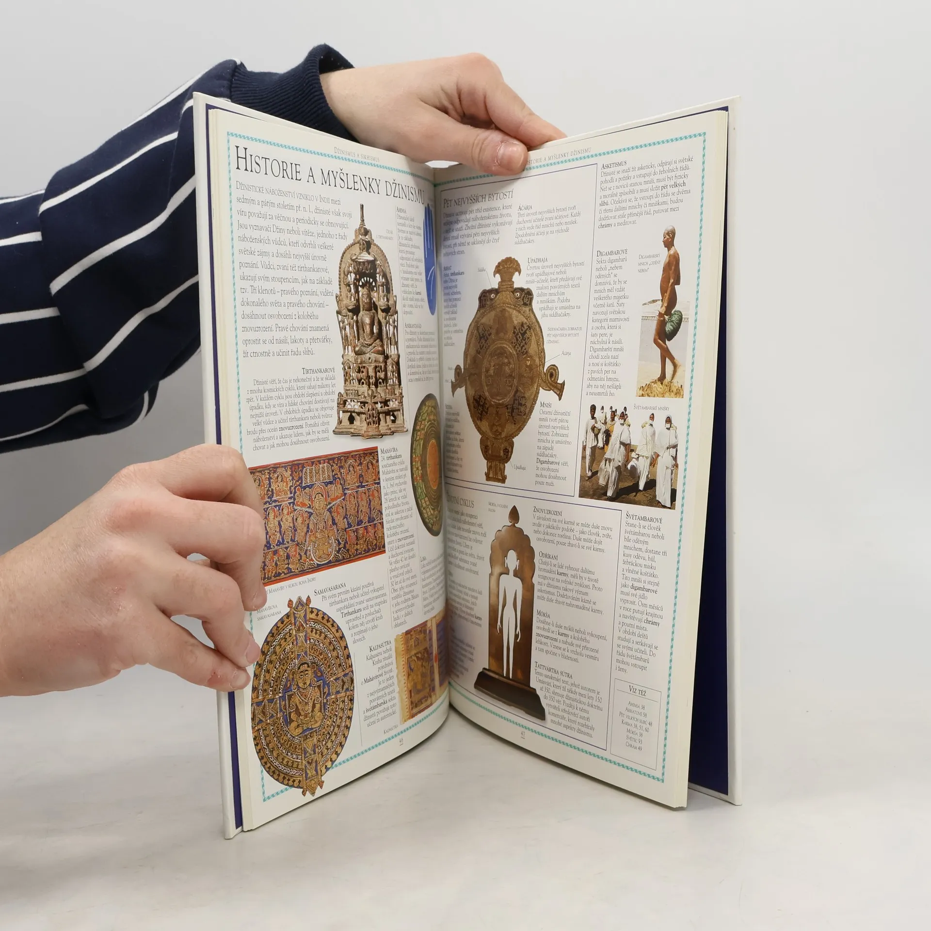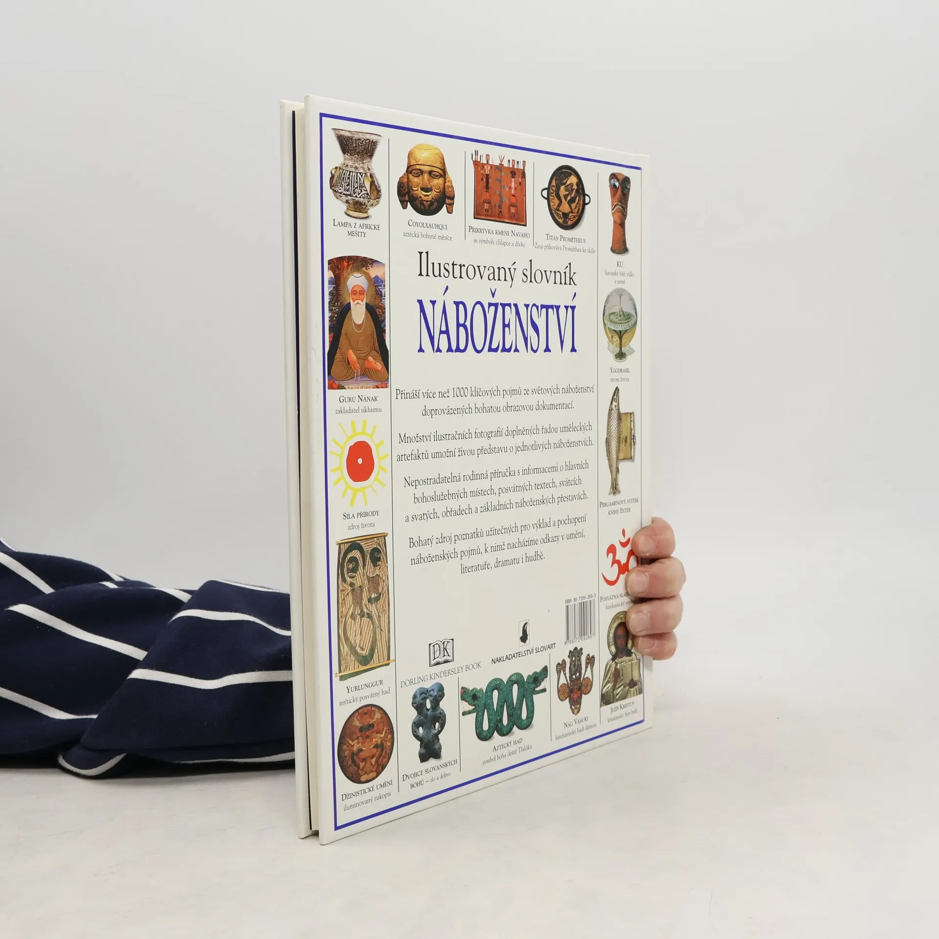 Kniha přináší více než 1000 klíčových pojmů ze světových náboženství doprovázených bohatou obrazovou dokumentací. Množství ilustračních fotografií doplněných řadou uměleckých artefaktů umožní živou představu o jednotlivých náboženstvích. Nepostradatelná rodinná příručka s informacemi o hlavních bohoslužebných místech, posvátných textech, svátcích a svatých, obřadech a základních náboženských představách. Bohatý zdroj poznatků užitečných pro výklad a pochopení náboženských pojmů, k nimž nacházíme odkazy v umění, literatuře, dramatu i hudbě.