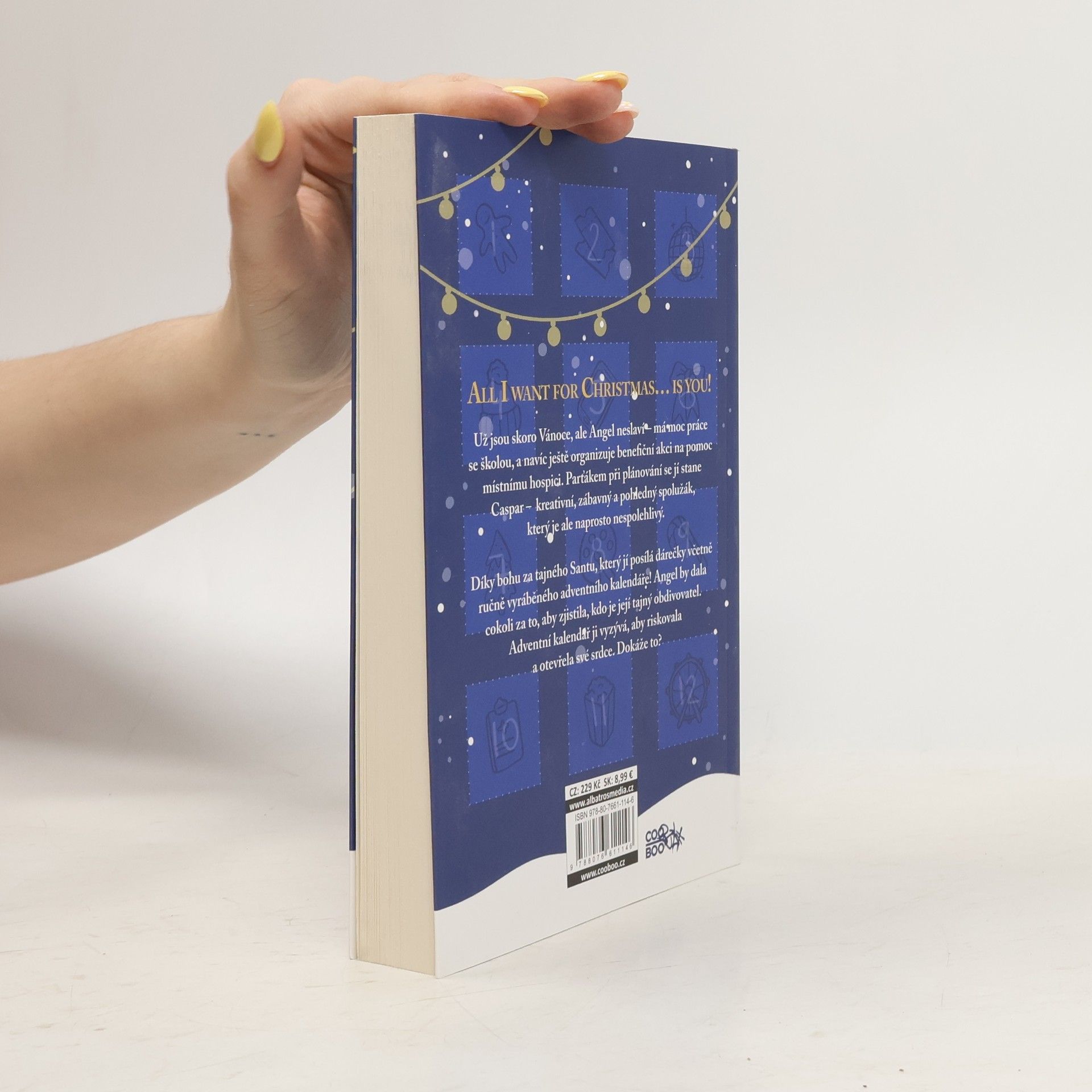 All I want for Christmas... is you! Už jsou skoro Vánoce, ale Angel neslaví – má moc práce se školou, a navíc ještě organizuje benefiční akci na pomoc místnímu hospici. Parťákem při plánování se ji stane Caspar – kreativní, zábavný a pohledný spolužák, který je ale naprosto nespolehlivý. Díky bohu za tajného Santu, který jí posílá dárečky včetně ručně vyráběného adventního kalendáře! Angel by dala cokoli za to, aby zjistila, kdo je její tajný obdivovatel. Adventní kalendář ji vyzývá, aby riskovala a otevřela své srdce. Dokáže to?
