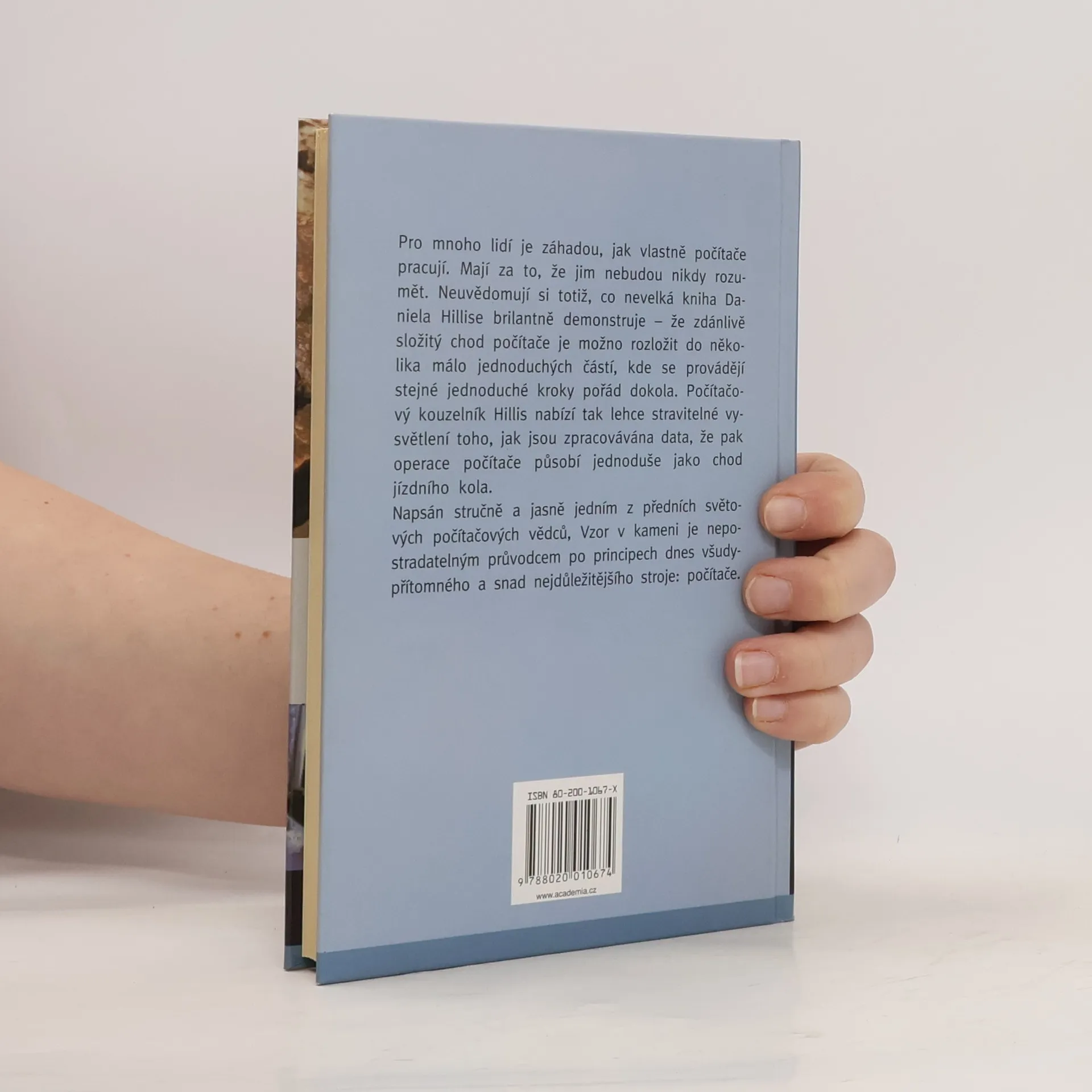 Pro mnoho lidí je záhadou, jak vlastně počítače pracují. Kniha Daniela Hillise brilantně demonstruje, že zdánlivě složitý chod počítače je možno rozložit do několika málo jednoduchých částí, kde se provádějí stejné jednoduché kroky pořád dokola. Autor tak nabízí lehce stravitelné vysvětlení toho, jak jsou zpracovávána data. Vzor v kameni je nepostradatelným průvodcem po principech dnes všudypřítomného a snad nejdůležitějšího stroje: počítače.