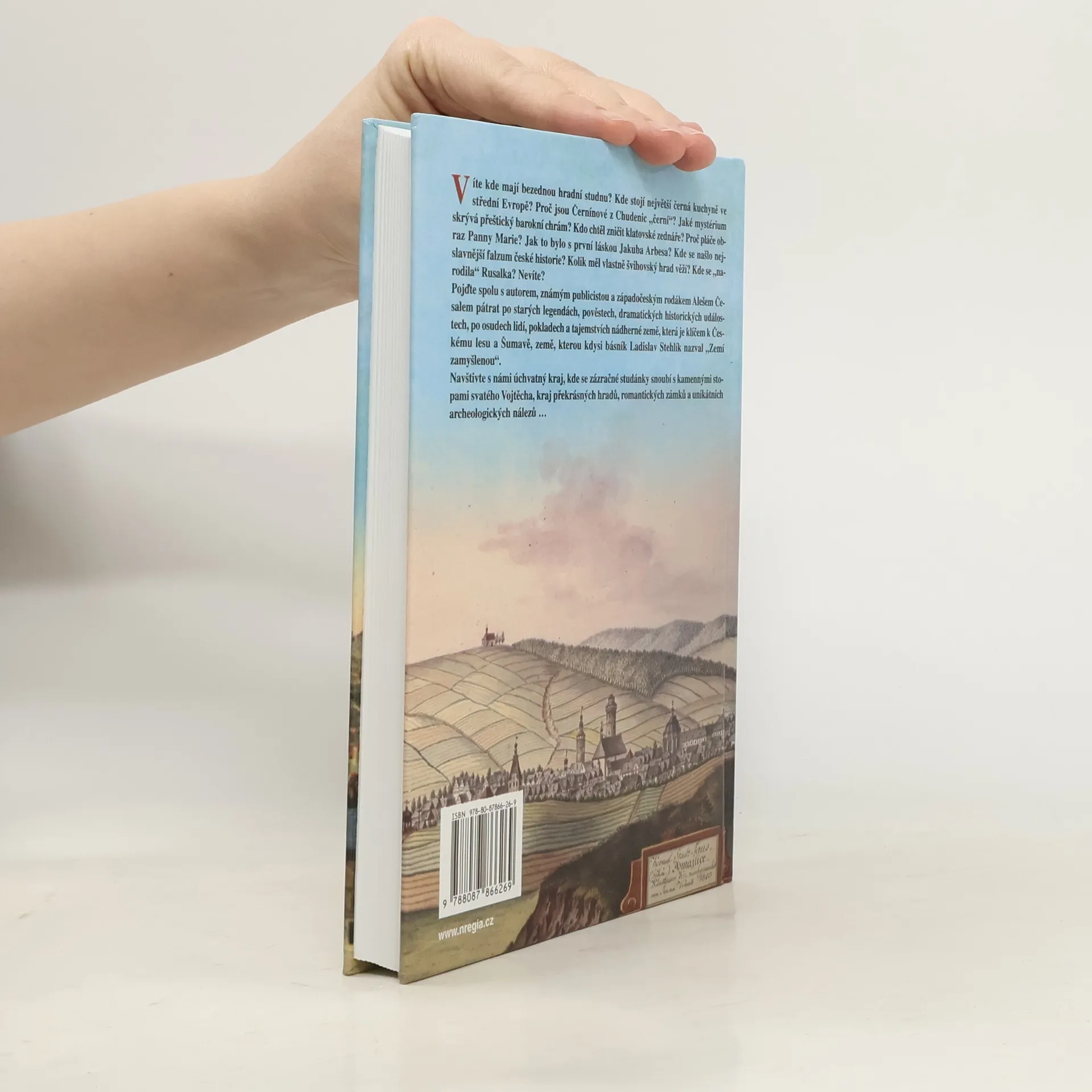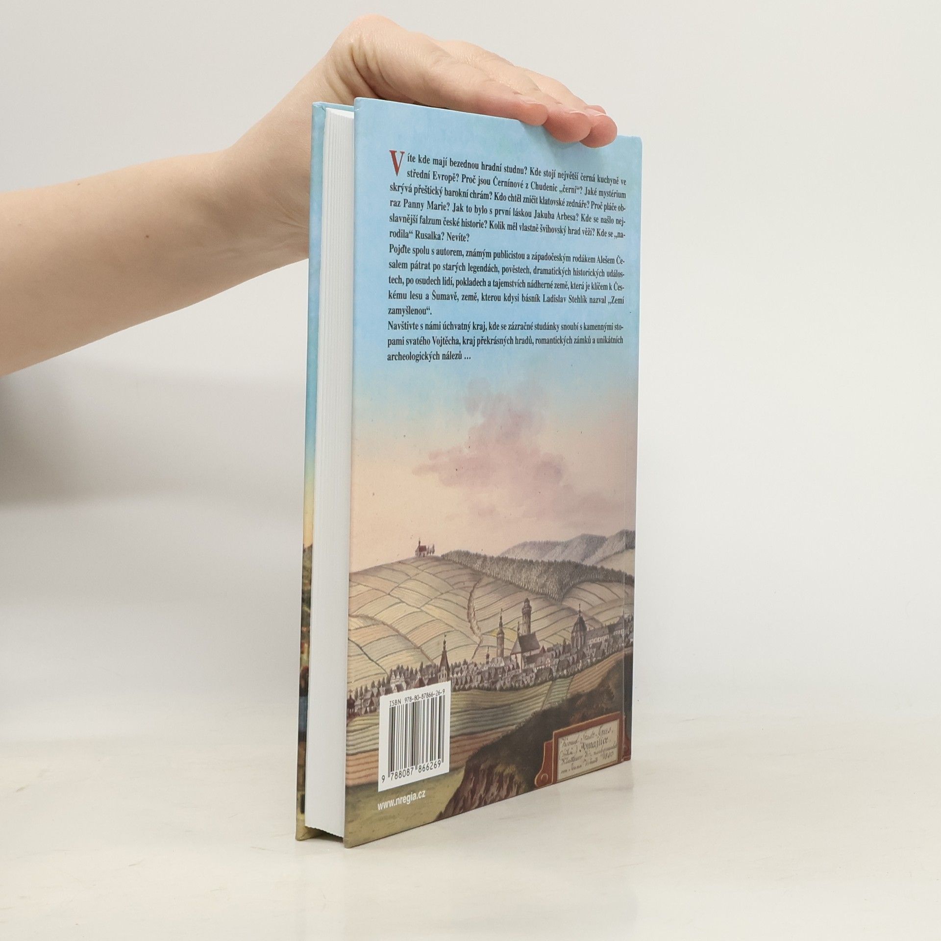 Víte kde mají bezednou hradní studnu? Kde stojí největší černá kuchyně ve střední Evropě? Proč jsou Černínové z Chudenic „černí“? Jaké mystérium skrývá přeštický barokní chrám? Kdo chtěl zničit klatovské zednáře? Proč pláče obraz Panny Marie? Jak to bylo s první láskou Jakuba Arbesa? Kde se našlo nejslavnější falzum české historie? Kolik měl vlastně švihovský hrad věží? Kde se „narodila“ Rusalka? Nevíte? Pojďte spolu s autorem, známým publicistou a západočeským rodákem Alešem Česalem pátrat po starých legendách, pověstech, dramatických historických událostech, po osudech lidí, pokladech a tajemstvích nádherné země, která je klíčem k Českému lesu a Šumavě, země, kterou kdysi básník Ladislav Stehlík nazval „Zemí zamyšlenou“. Navštivte s námi úchvatný kraj, kde se zázračné studánky snoubí s kamennými stopami sv. Vojtěcha, kraj překrásných hradů, romantických zámků a unikátních archeologických nálezů …