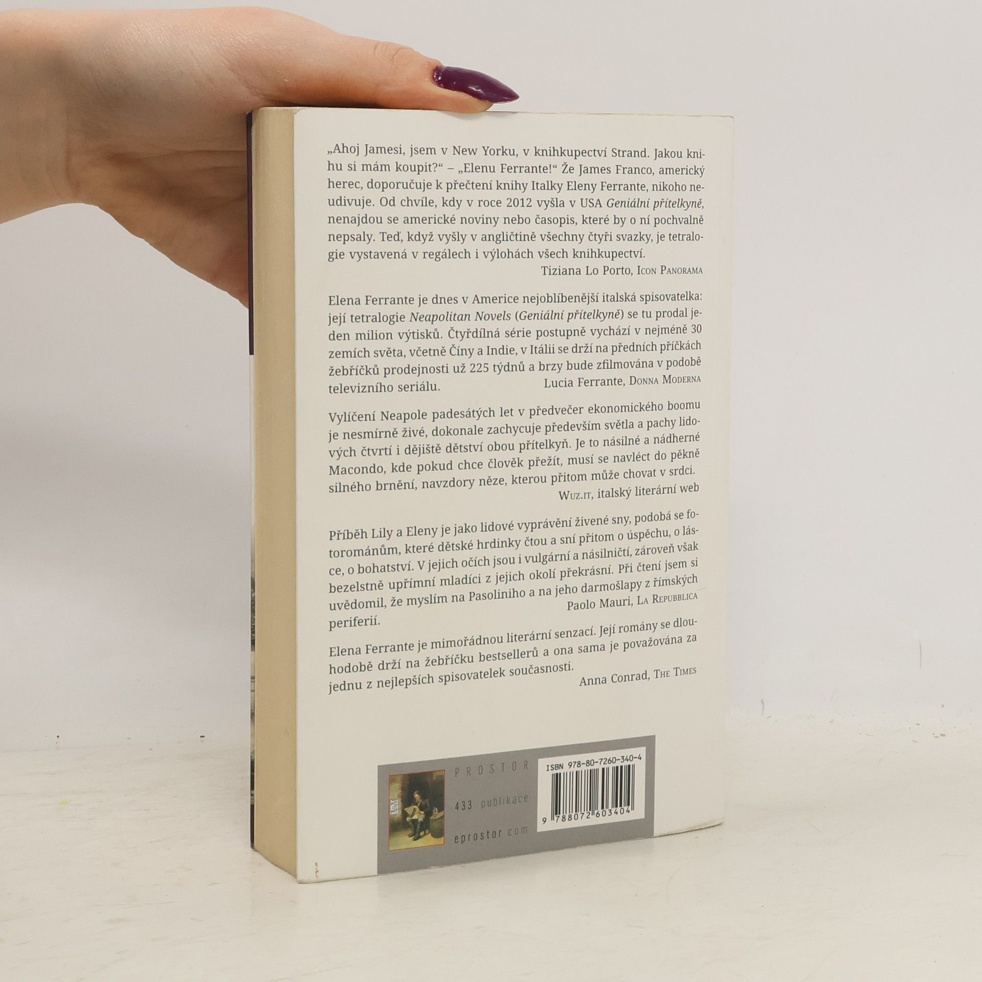 Neskutočne úžasná kniha, tak skvelý príbeh, do detailov rozobrané postavy, odporúčam úplne každému, koho bavia dobre napísané knihy, pretože Elena Ferrante fakt píše božsky. Mrzí ma, že som ju nečítala skôr :-) Neviem čo dodať, kúpte si ju, neverím, že by ste to oľutovali.