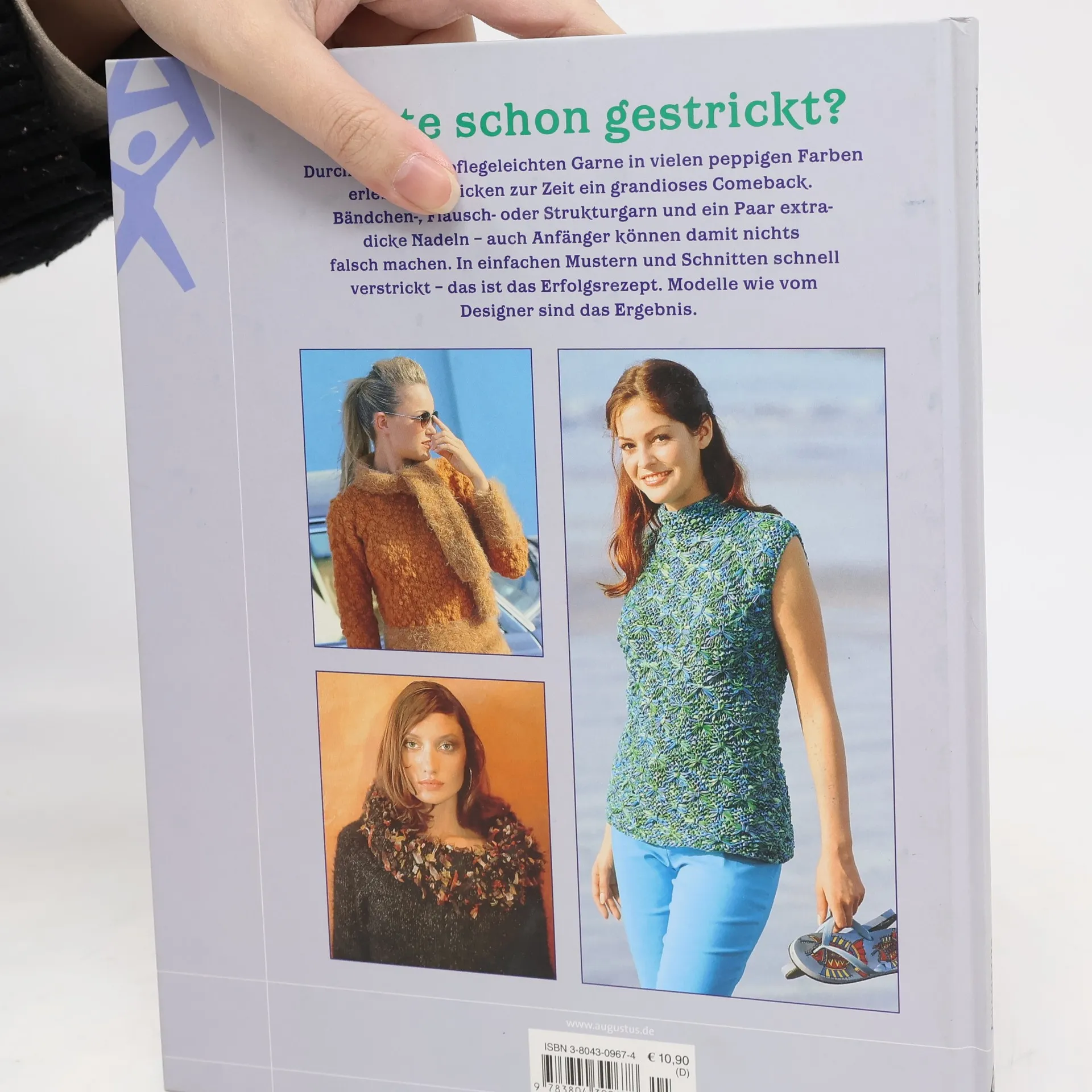Durch die neuen, pflegeleichten Garne in vielen poppigen Farben erlebt ur Zeit das Stricken gerade für junge Frauen ein grandioses Comeback. Effektgarne (Bändchengarn, Fransengarn, Flauschgarn etc.) mit einfachen Mustern und Schnitten schnell verstrickt - das ist das Erfolgsrezept. Modelle wie vom Designer sind das Ergebnis.