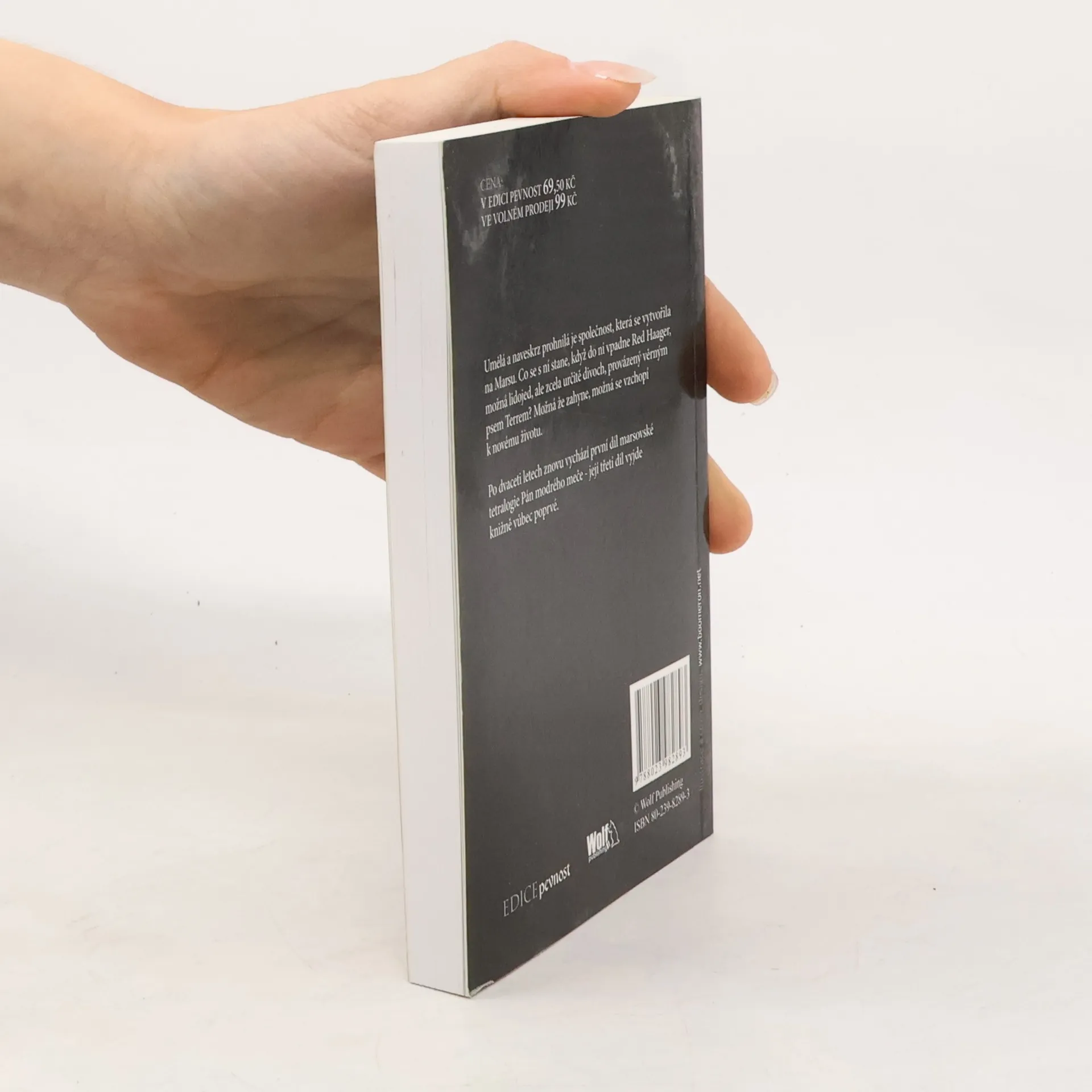 Umělá a naveskrz prohnilá je společnost, která se vytvořila na Marsu. Co se s ní stane, když do ní vpadne Red Haager, možná lidojed, ale zcela určitě divoch, provázený věrným psem Terrem? Možná že zahyne, možná se vzchopí k novému životu. Po dvaceti letech znovu vychází první díl marsovské tetralogie Pán modrého meče.