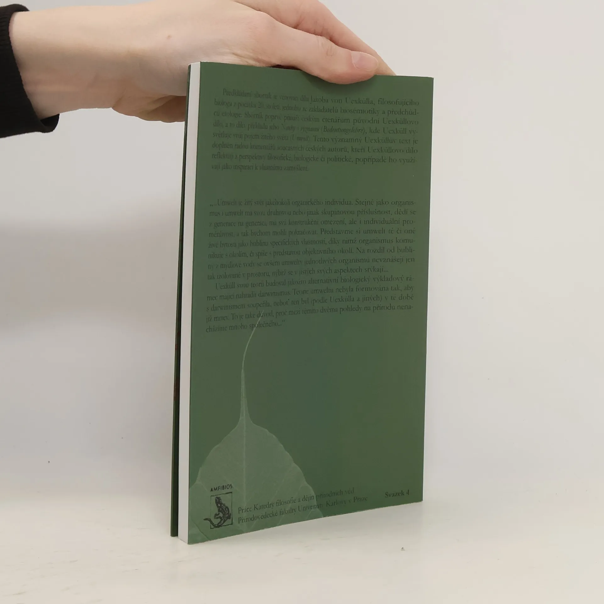 Sborník se zaměřuje na Jakoba von Uexkülla, filosofujícího biologa z počátku 20. století, zakladatele biosémiotiky a předchůdce etologie. Poprvé přináší českým čtenářům jeho původní dílo, konkrétně přeloženou Nauku o významu, ve které Uexküll vysvětluje pojem živého světa (Umwelt). Tento významný text je doplněn komentáři současných českých autorů, kteří ho reflektují z různých perspektiv, včetně filosofické, biologické a politické, a využívají ho jako inspiraci k vlastnímu zamyšlení. Uexküll definuje umwelt jako žitý svět jakéhokoli organického individua, které má svou druhovou příslušnost a dědí se z generace na generaci. Umwelt má konstrukční omezení i individuální proměnlivost, a lze ho chápat jako bublinu specifických vlastností, díky nimž organismus komunikuje s okolím. Na rozdíl od mýdlové bubliny se však umwelty jednotlivých organismů vzájemně stýkají. Uexküllova teorie byla alternativním biologickým výkladem, který měl nahradit darwinismus, přičemž nebyla zamýšlena jako konkurence tomuto přístupu, který byl podle něj v té době již mrtev. Proto mezi těmito pohledy na přírodu nenacházíme mnoho společného.