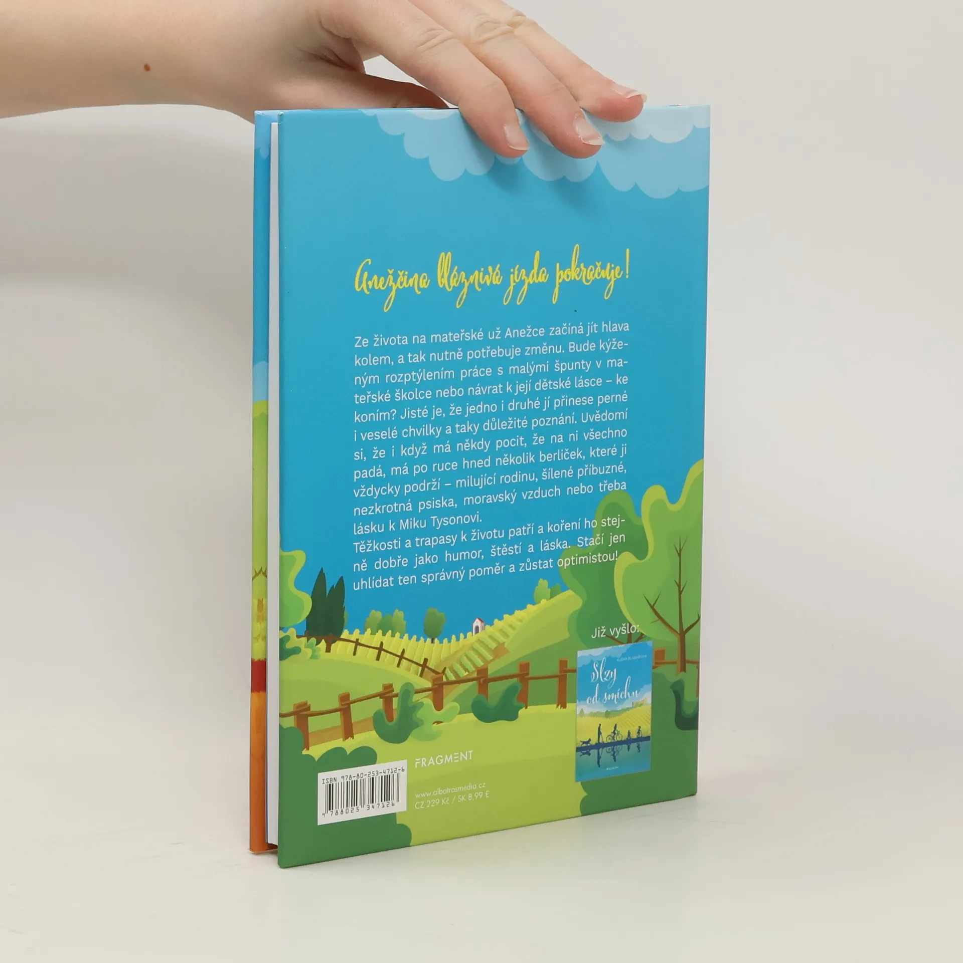 Anežčina bláznivá jízda životem pokračuje! Volné pokračování humoristického románu Slzy od smíchu Ze života na mateřské už Anežce začíná jít hlava kolem, a tak nutně potřebuje změnu. Bude kýženým rozptýlením práce s malými špunty v mateřské školce nebo návrat k její dětské lásce – ke koním? Jisté je, že jedno i druhé jí přinese perné i veselé chvilky a taky důležité poznání. Uvědomí si, že i když má někdy pocit, že na ni všechno padá, má po ruce hned několik berliček, které ji vždycky podrží –milující rodinu, šílené příbuzné, nezkrotná psiska, moravský vzduch nebo třeba lásku k Miku Tysonovi. Těžkosti a trapasy k životu patří a koření ho stejně dobře jako humor, štěstí a láska. Stačí jen uhlídat ten správný poměr a zůstat optimistou!