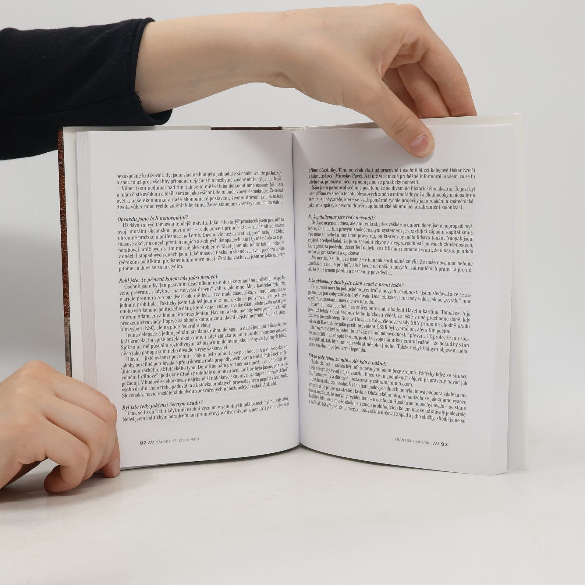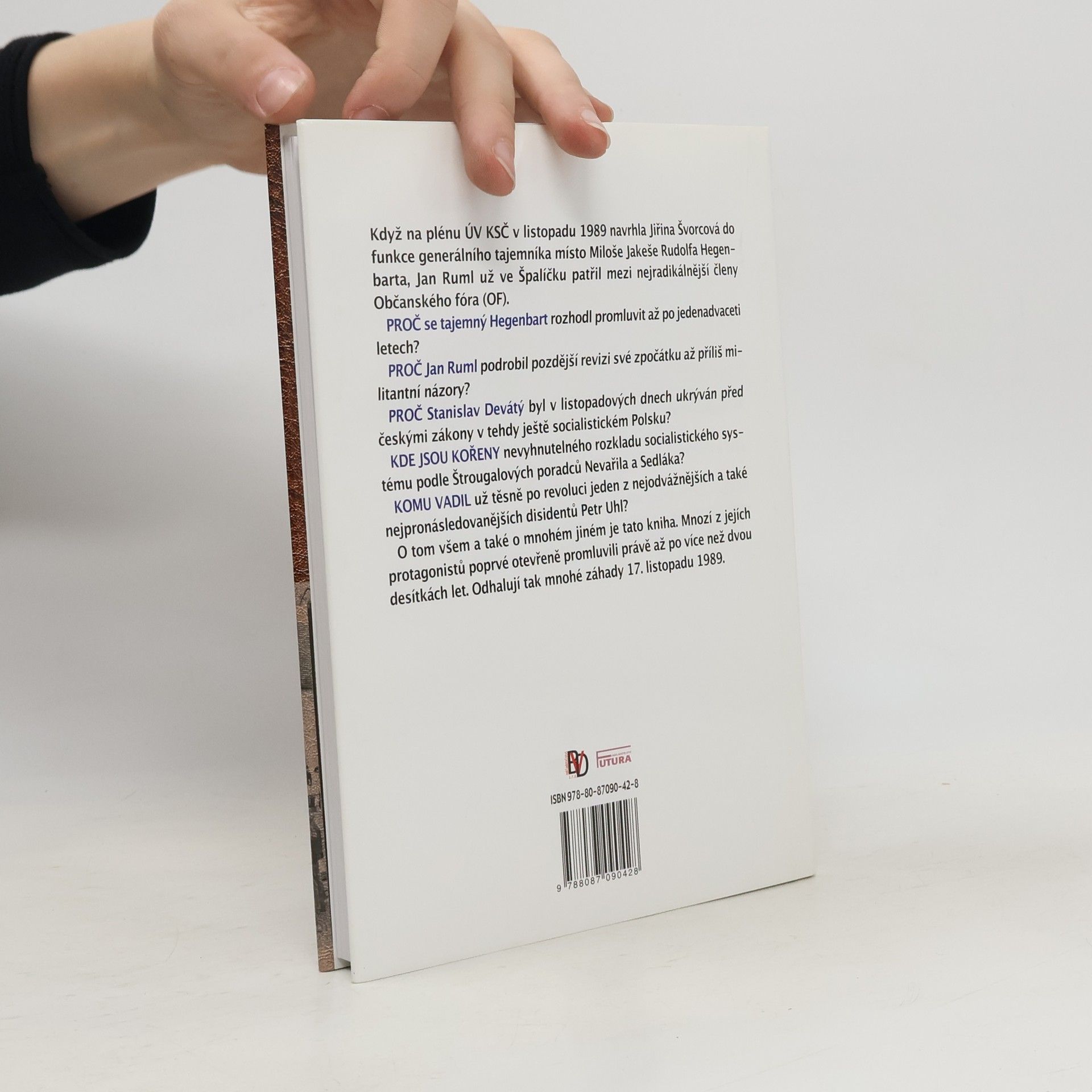 Devátý, Hegenbart, Jičínský, Nevařil, Ruml, Sedlák, Uhl, Urbánek : svědectví po 21 letech Když na plénu ÚV KSČ v listopadu 1989 navrhla Jiřina Švorcová do funkce generálního tajemníka místo Miloše Jakeše Rudolfa Hegenbarta, Jan Ruml už ve Špalíčku patřil mezi nejradikálnější členy Občanského fóra (OF). Proč se tajemný Hegenbart rozhodl promluvit až po jedenadvaceti letech? Proč Jan Ruml podrobil pozdější revizi své zpočátku až příliš militantní názory? Proč Stanislav Devátý byl v listopadových dnech ukrýván před českými zákony v tehdy ještě socialistickém Polsku? Kde jsou kořeny nevyhnutelného rozkladu socialistického systému podle Štrougalových poradců Nevařila a Sedláka? Komu vadil už těsně po revoluci jeden z nejodvážnějších a také nejpronásledovanějších disidentů Petr Uhl? O tom všem a také o mnohém jiném je tato kniha. Mnozí z jejích protagonistů poprvé otevřeně promluvili právě až po více než dvou desítkách let. Odhalují tak mnohé záhady 17. listopadu 1989.