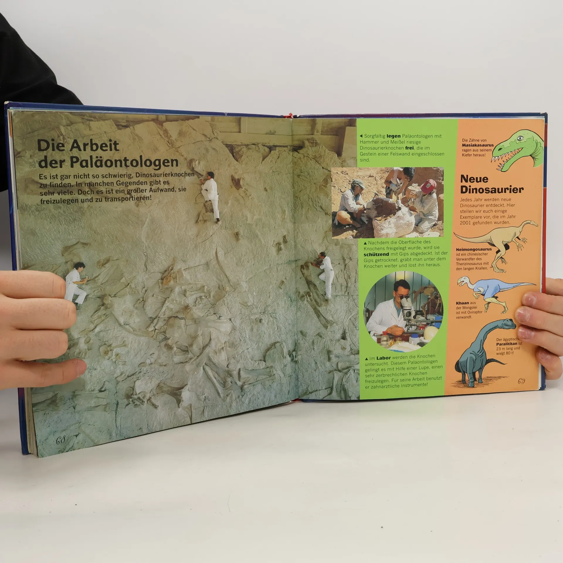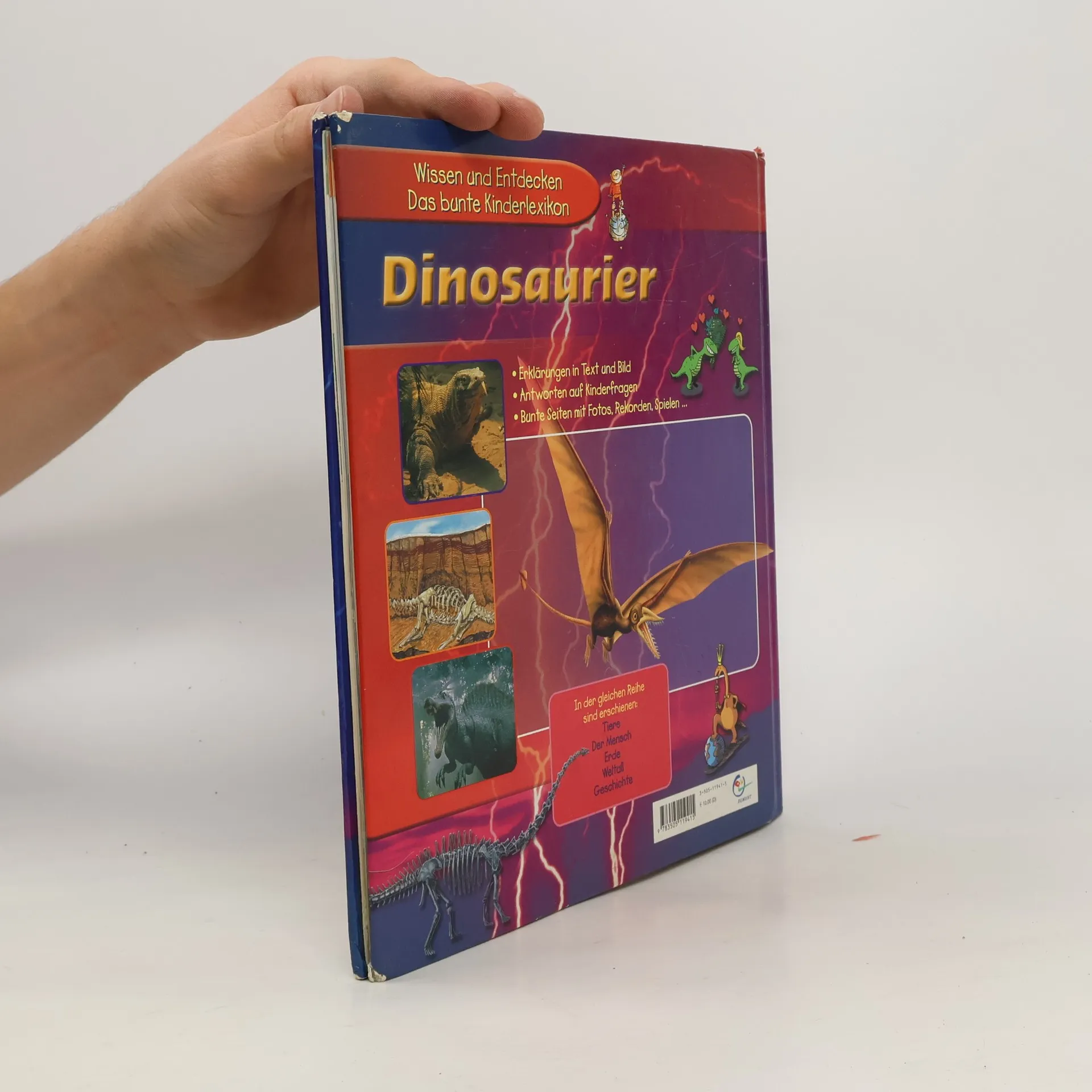 Viele Bilder und knappe Informationen zu Fleisch- und Pflanzenfressern, Entwicklung der Riesenechsen, Rekontruktion aufgrund der fossilen Funde u.a.m.