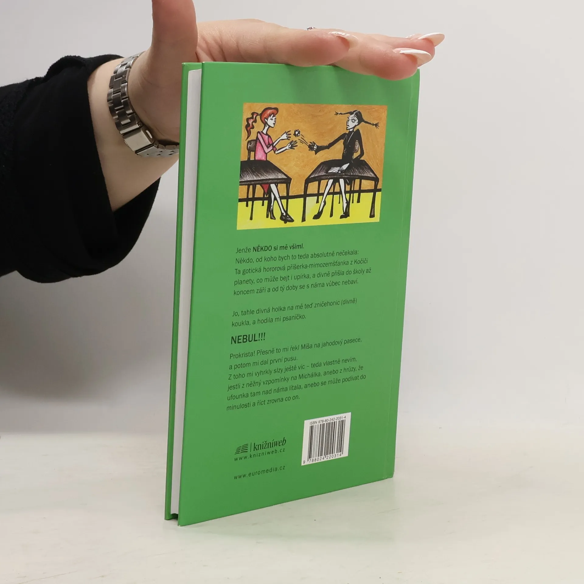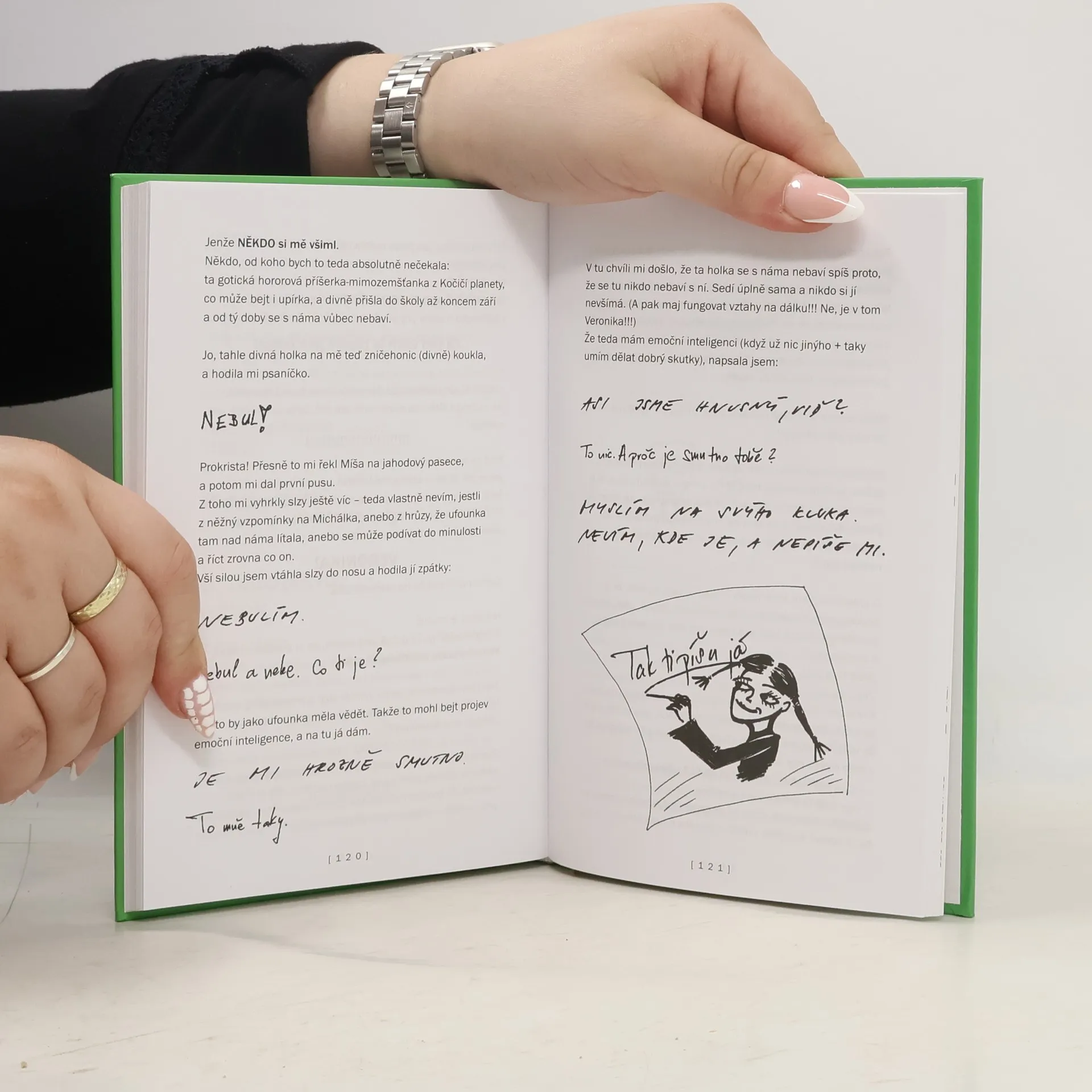 Holky, kde jsou kluci? (ale kretény neberem!) - Denková Melita Jenže NĚKDO si mě všiml. Někdo, od koho bych to teda absolutně nečekala: Ta gotická hororová příšerka-mimozemšťanka z Kočičí planety, co může bejt i upírka, a divně přišla do školy až koncem září a od tý doby se s náma vůbec nebaví. Jo, tahle divná holka na mě teď zničehonic (divně) koukla, a hodila mi psaníčko. NEBUL!!! Prokrista! Přesně to mi řekl Míša na jahodový pasece, a potom mi dal první pusu. Z toho mi vyhrkly slzy ještě víc - teda vlastně nevím, jestli z něžný vzpomínky na Michálka, anebo z hrůzy, že ufounka tam nad náma lítala, anebo se může podívat do minulosti a říct zrovna co on.