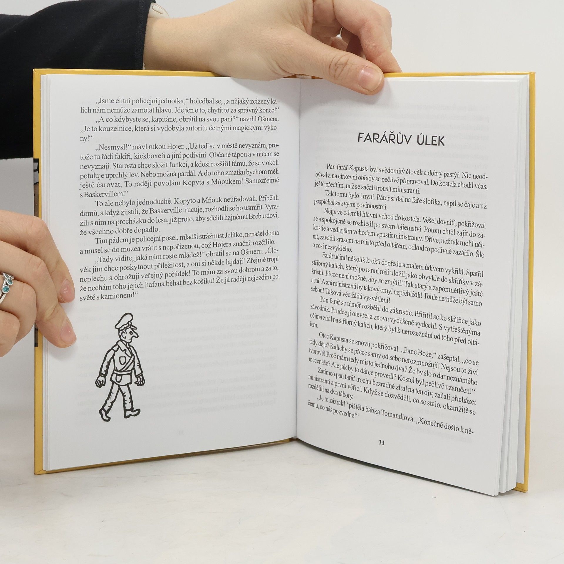 Nerozlučná dvojice kamarádů z Posázaví prožívá další dobrodružství tentokrát s místním fakírem. Vhodné pro starší děti. Valentýn Cucek, začínající fakír, hodlá proslavit sebe i své rodné Posázaví neobvyklou produkcí. Chce strávit celý měsíc pohřbený v rakvi. Nepočítá ovšem se závistivým kickboxerem Hubičkou a nezvedeným žákem Bičištěm. Ještě štěstí, že jsou tady Kopyto i Mňouk a pokusí se ze všech sil přispět k vyřešení nepříjemností. Text doplňují černobílé ilustrace Jiřího Wintera-Neprakty.
