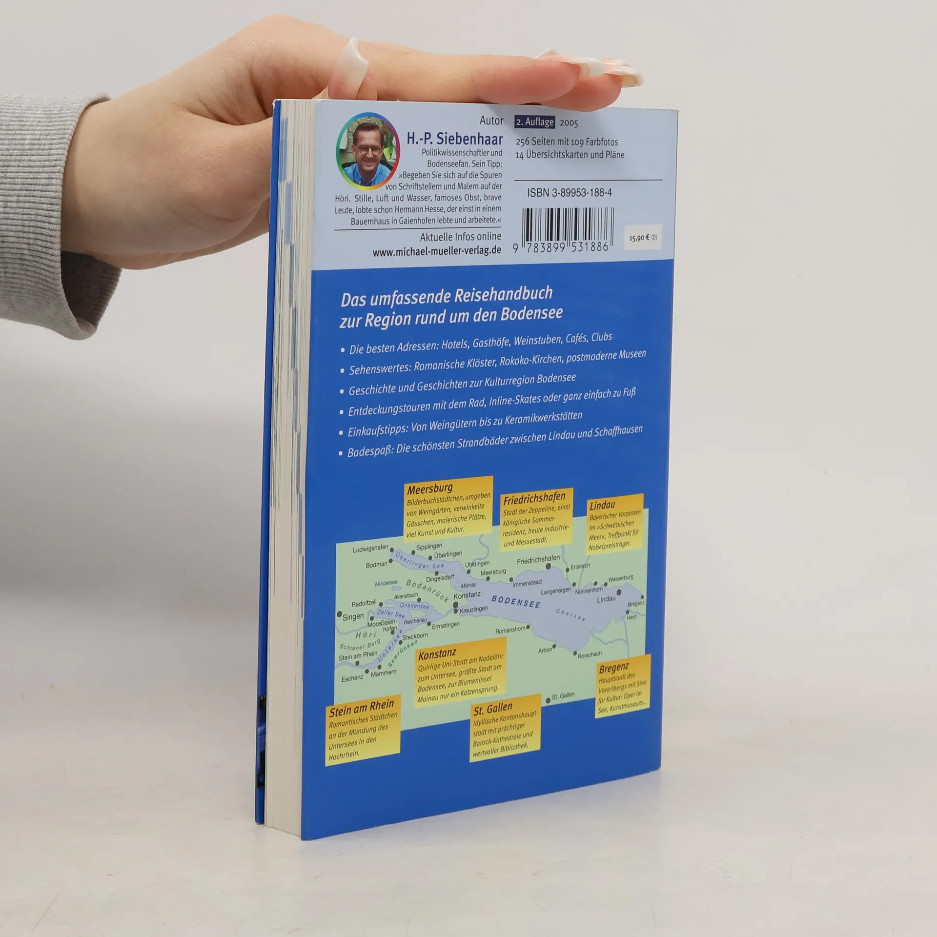 Der Bodensee ist ein äußerst beliebtes Reiseziel, das sieht man schon daran, dass gleichzeitig Titel zu dieser Region in 3 der beliebtesten Grundbestandsreihen erscheinen (vgl. den Baedeker "Bodensee" und das DuMontReisetaschenbuch von Gerhard Fischer in dieser Nr.). Der attraktive und übersichtliche Band aus der MichaelMüllerReihe, die sich mit ihren detaillierten Informationen an Individualreisende richtet, war in der letzten Auflage (BA 11/02) von Grund auf auch optisch überarbeitet worden. Die vorliegende Auflage wurde dagegen "nur" in den reisepraktischen Angaben gründlich aktualisiert. Auflagen vor 2002 löschen, die Ausgabe von 2002 kann auslaufen. Diese aktuelle Ausgabe sollte möglichst neben den beiden oben genannten Titeln angeboten werden. (1)