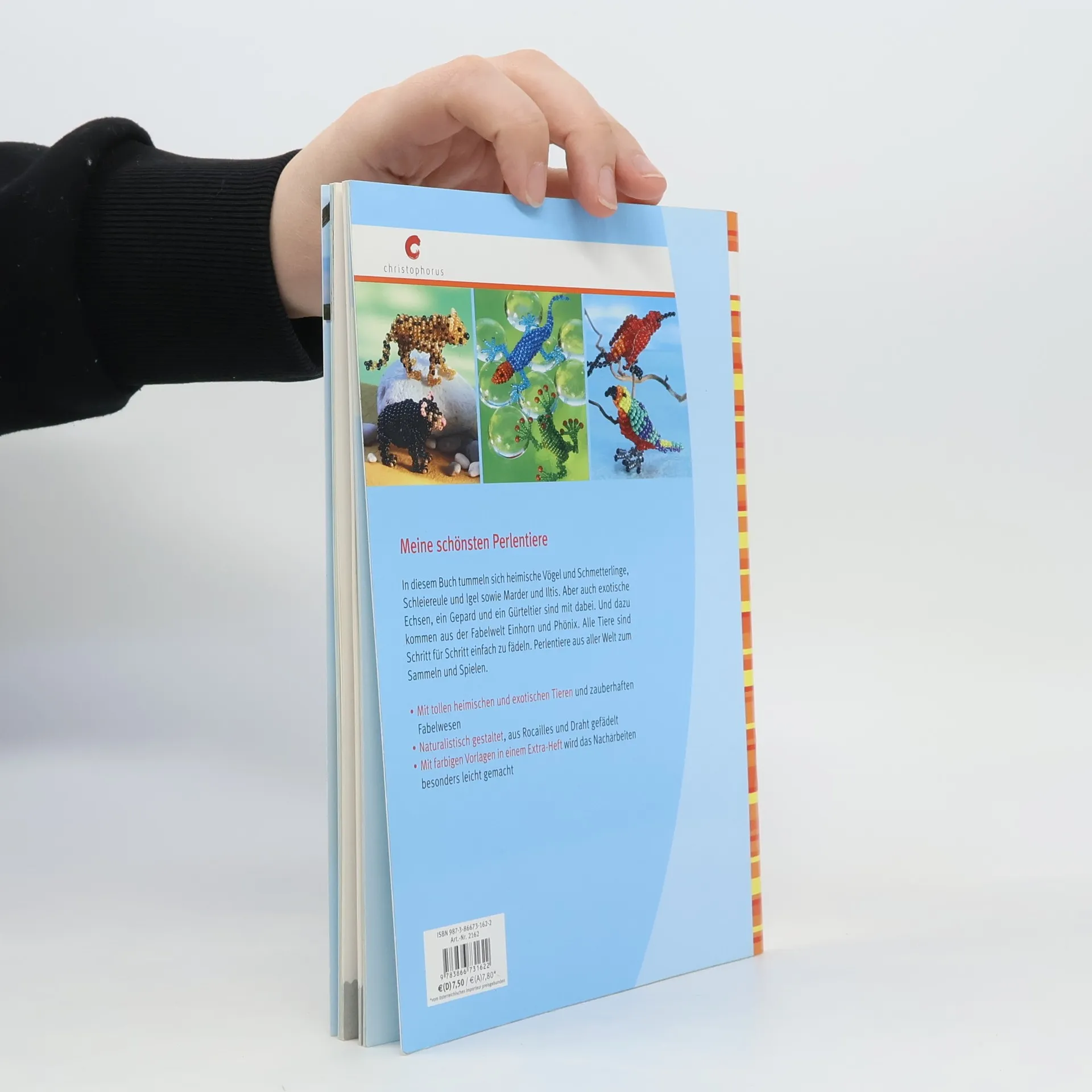 In diesem Buch tummeln sich heimische Vögel und Schmetterlinge, Schleiereule und Igel sowie Marder und Iltis. Aber auch exotische Echsen, ein Gepard und ein Gürteltier sind mit dabei. Und dazu kommen aus der Fabelwelt Einhorn und Phönix. Alle Tiere sind Schritt für Schritt einfach zu fädeln. Perlentiere aus aller Welt zum Sammeln und Spielen.