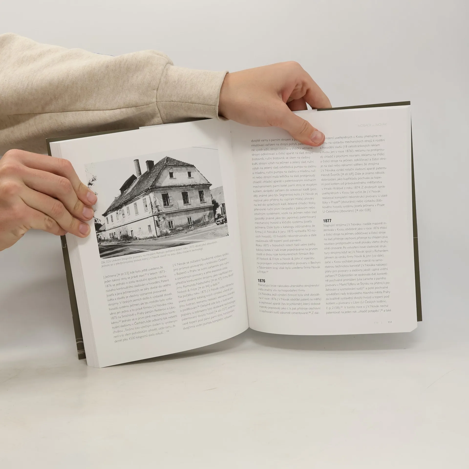 Publikace sleduje uplatnění nové koncepce průmyslové pivovarské architektury v šedesátých a sedmdesátých letech 19. století v českých zemích, a to na příkladech práce dvou nejvýznamnějších tuzemských osobností – Gustava Nobacka a Josefa Vincence Nováka a jejich konkurenčních projekčních a technologických kanceláří a připojených strojírenských podniků. Na pozadí základních obrysů vývoje používaných technologií je srovnává s díly jejich předchůdců, Karla Völcknera a Ferdinanda Krabese, i současníků, jako byl Richard Jahn. Publikace vznikla v rámci řešení projektu Industriální architektura. Památka průmyslového dědictví jako technicko-architektonické dílo a jako identita místa (DG16P02H001) v programu aplikovaného výzkumu a vývoje Ministerstva kultury České republiky NAKI II.