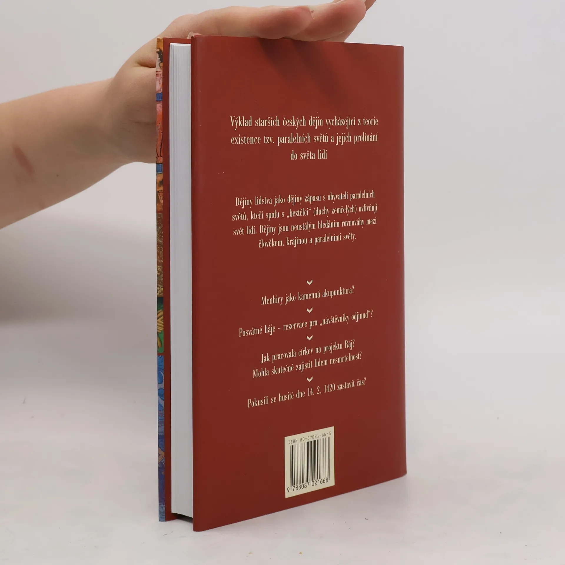 Od pravěku po husitské války (do roku 1435) Výklad starších českých dějin vycházející z teorie existence tzv. paralelních světů a jejich prolínání do světa lidí. Dějiny lidstva jako dějiny zápasu s obyvateli paralelních světů, kteří spolu s "beztělci" (duchy zemřelých) ovlivňují svět lidí. Dějiny jsou neustálým hledáním rovnováhy mezi člověkem, krajinou a paralelními světy. • Menhiry jako kamenná akupunktura? • Posvátné háje – rezervace pro „návštěvníky odjinud“? • Jak pracovala církev na projektu Ráj? Mohla skutečně zajistit lidem nesmrtelnost? • Pokusili se husité dne 14. 2. 1420 zastavit čas