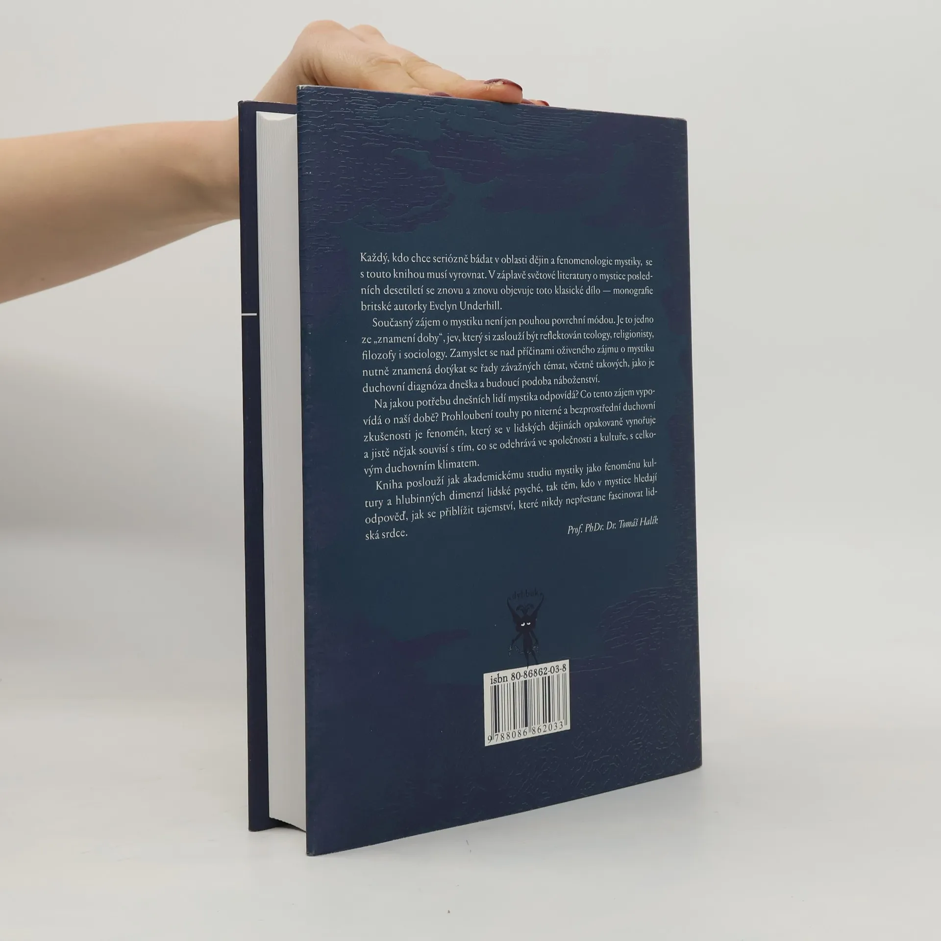 Mystika (1911) je považována za ojedinělý a nepřekonaný text, jehož autorka Evelyn Underhill je uznávána jako přední znalkyně duchovního uvažování. Tato studie o lidském duchovním vědomí zkoumá hluboké prožitky a osobní úvahy, zároveň je konfrontována s různými filozofickými, psychologickými a náboženskými hledisky. Na pozadí rozjímání a svědectví velkých mystiků, jako jsou Mistr Eckhart či sv. Jan od Kříže, autorka nabízí jedinečný pohled do mystického světa a odkrývá jeho nekonečné rozměry. Zkoumá také stupně mystické cesty, která vede duši od omezeného života smyslů k sjednocení s Absolutním a poznání nadsmyslové Skutečnosti. Evelyn Underhill nás vyzývá k introspekci, abychom objevili své nejvnitřnější já a vstoupili do světa, kde za zavřenýma očima spatříme Nic i Vše. Kniha je nezbytná pro každého, kdo se seriózně zajímá o dějiny a fenomenologii mystiky. Současný zájem o mystiku není povrchní módou, ale odráží hlubší duchovní potřeby dnešní doby. Tento oživený zájem souvisí s duchovním klimatem společnosti a nabízí podněty k zamyšlení pro teology, religionisty, filozofy a sociology. Kniha slouží jak akademickému studiu mystiky, tak těm, kdo hledají odpovědi na tajemství, které fascinují lidská srdce.