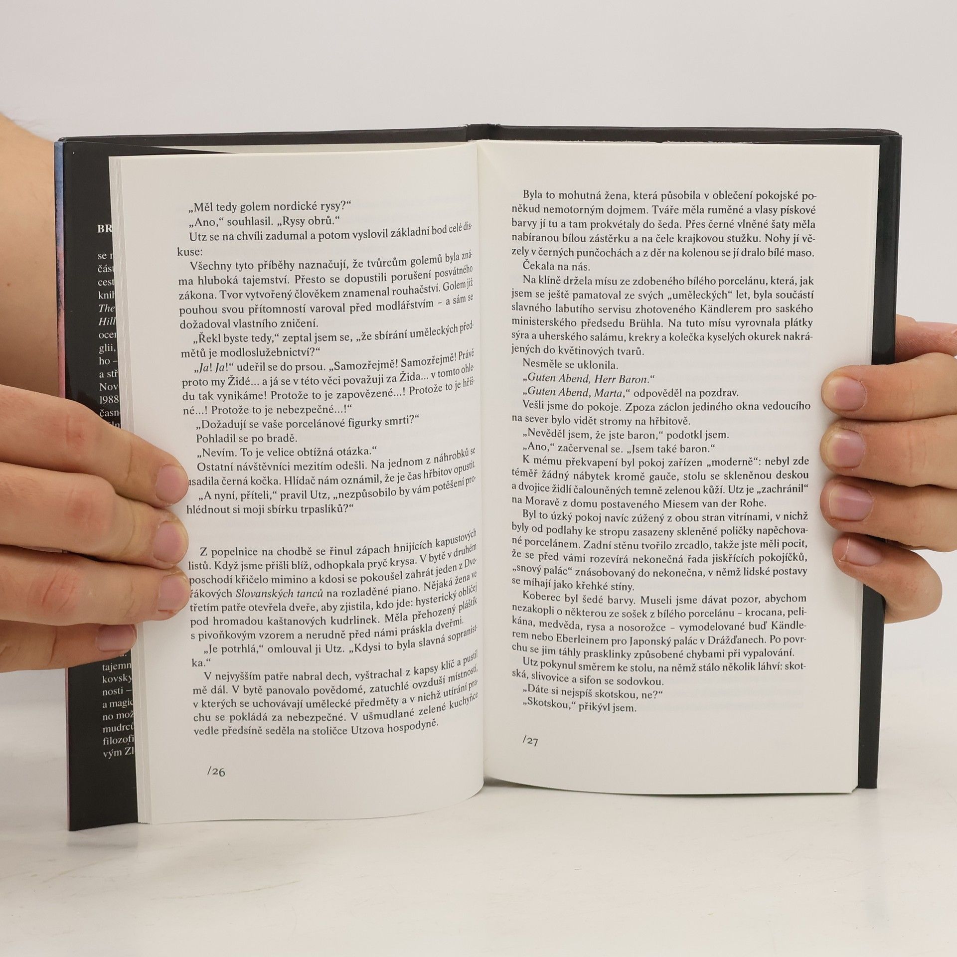 Děj novely se odehrává v Čechách, především v Praze, a zobrazuje osudy vášnivého sběratele porcelánu a operních div, barona Joachima Utze. Na jeho příkladu se mapují duchovní a politické dějiny země, přičemž příběh osciluje mezi obdobím těsně před sovětskou okupací a normalizačními léty, a zároveň se vrací do vzdálené minulosti, zejména do doby rudolfínské. Novela, poprvé vydaná v roce 1988, těsně před autorovou předčasnou smrtí, byla nedávno zfilmována a nyní se dostává k čtenářům. I když je rozsah díla útlý, je pečlivě vypracované a líčí fascinující osudy barona Utze. Autor, který české prostředí dobře zná, popisuje atmosféru s maximální objektivitou. Praha se v jeho podání jeví jako tajemné, mystické a magické město, kde je možné téměř cokoliv – od výroby zlata po setkání s metařem, který napsal filozofický komentář k Anaximandrovým Zlomkům. Děj tak nabízí nejen osobní příběh, ale i hlubší pohled na historické a kulturní souvislosti, které formovaly českou identitu.
