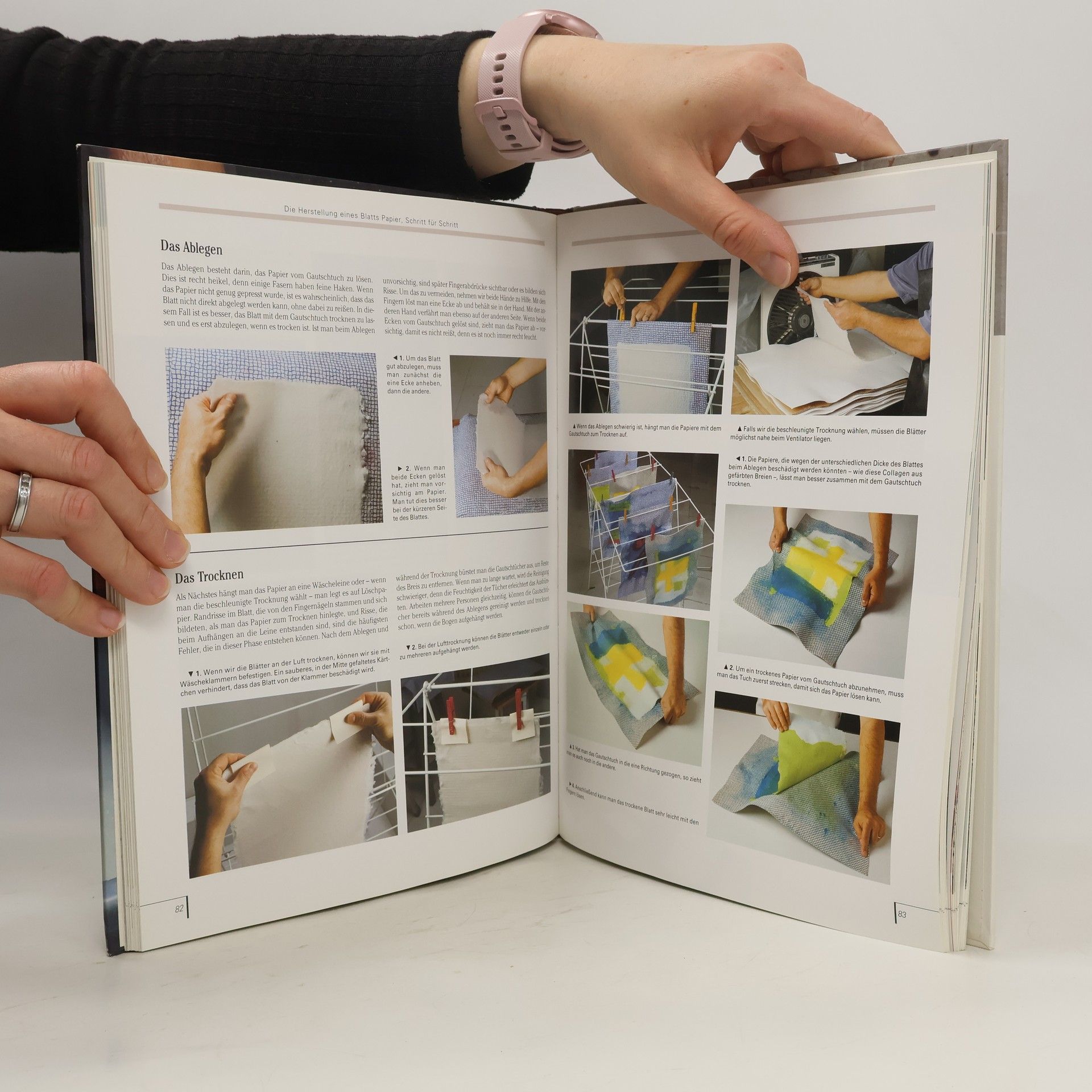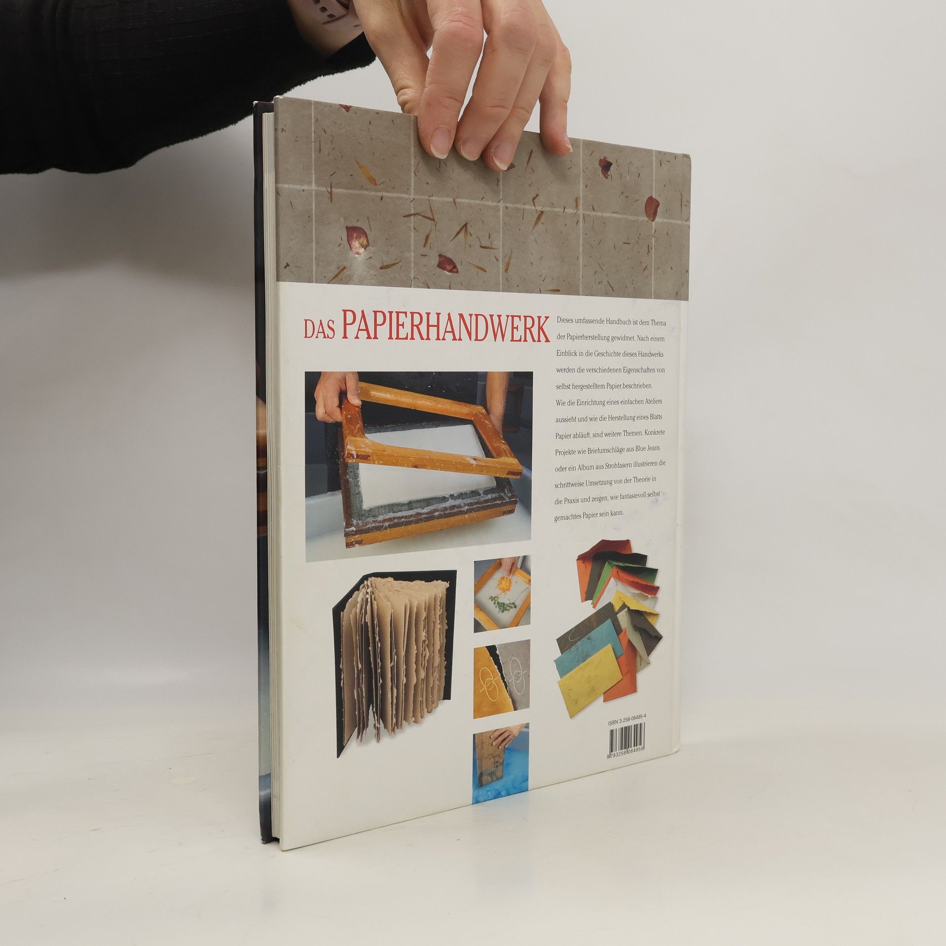 Dieses Handbuch führt klar und verständlich in das Thema der Papierherstellung ein. Nach einem geschichtlichen Überblick beschreibt der Autor die verschiedenen Komponenten von selbst hergestelltem Papier, seine Charakteristiken und Eigenschaften wie Oberflächenstruktur, Fasern, Grammatur, Farbe, Büttenrand oder Wasserzeichen. Ein wichtiger Teil des Buches ist der Einrichtung einer bescheidenen oder auch professionellen Papierwerkstatt gewidmet. Dazu wird die benötigte Ausstattung vorgestellt und gleichzeitig werden die gängigsten Methoden des Schöpfens erklärt – vom einfachen Blatt Papier bis zur Arbeit mit gefärbten Faserbreien oder eingeschöpften Blütenblättern. Verschiedene konkrete Projekte wie Briefumschläge aus Blue Jeans oder ein Album aus Strohfasern illustrieren die schrittweise Umsetzung von der Theorie in die Praxis und zeigen, wie vielfältig und fantasievoll selbst gemachtes Papier in modernen Kreationen eingesetzt werden kann. Ein reich bebildertes Buch, das sowohl für Anfänger/innen wie auch für Fortgeschrittene geeignet ist.