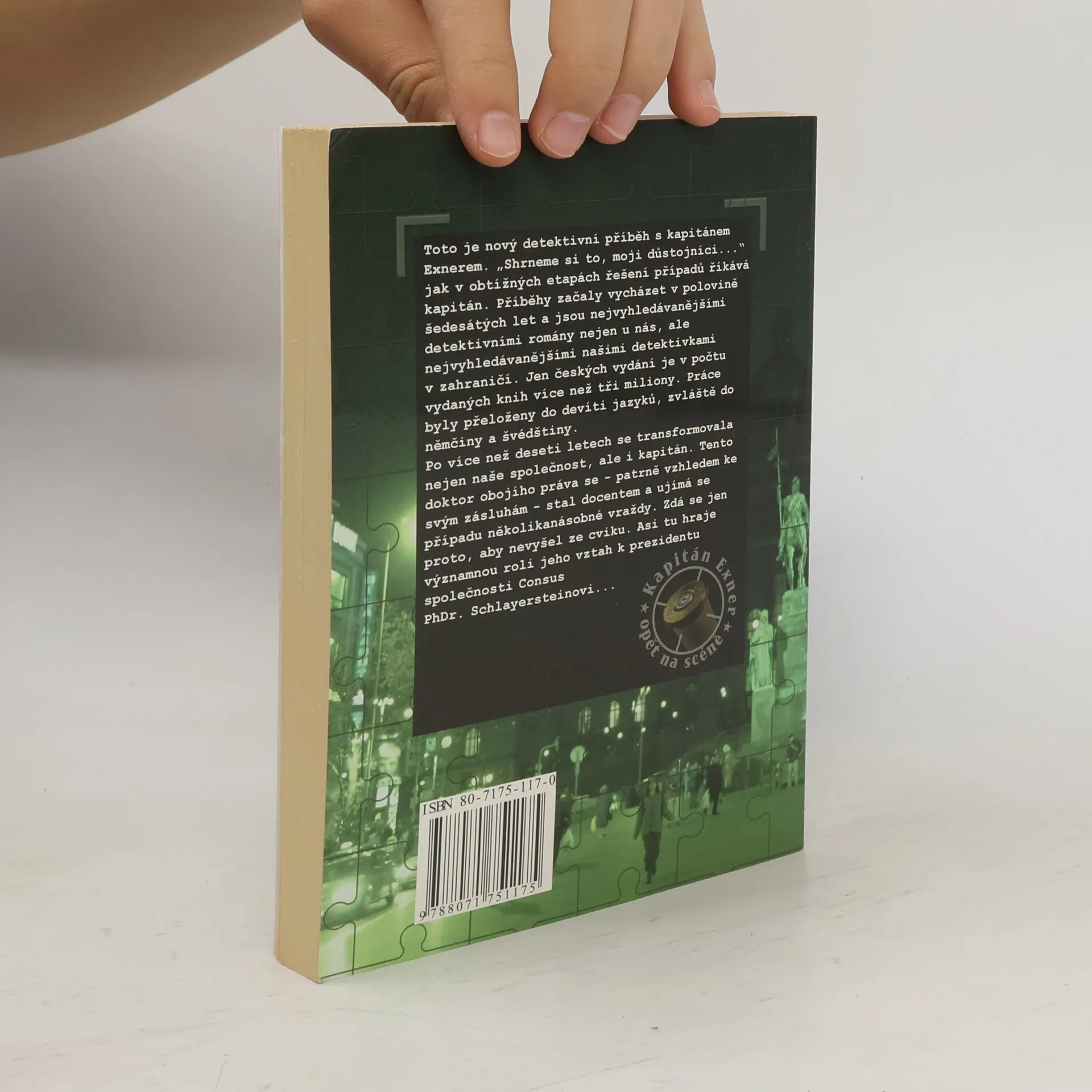 Toto je nový detektivní příběh s kapitánem Exnerem. „Shrneme si to, moji důstojníci…" jak v obtížných etapách řešení případů říkává kapitán. Příběhy začaly vycházet v polovině šedesátých let a jsou nejvyhledávanějšími detektivními romány nejen u nás, ale nejvyhledávanějšími našimi detektivkami v zahraničí. Jen českých vydání je v počtu vydaných knih více než tři miliony. Práce byly přeloženy do devíti jazyků, zvláště do němčiny a švédštiny. Po více než deseti letech se transformovala nejen naše společnost, ale i kapitán. Tento doktor obojího práva se – patrně vzhledem ke svým zásluhám – stal docentem a ujímá se případu několikanásobné vraždy Zdá se jen proto, aby nevyšel ze cviku. Asi tu hraje významnou roli jeho vztah k prezidentu společnosti Consus PhDr. Schlayersteinovi…