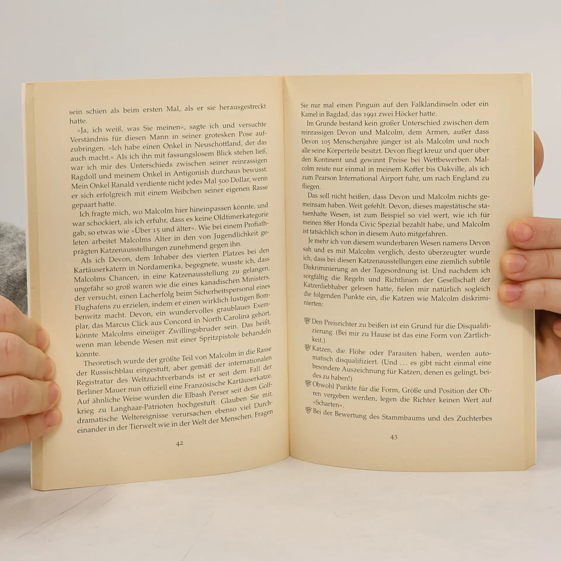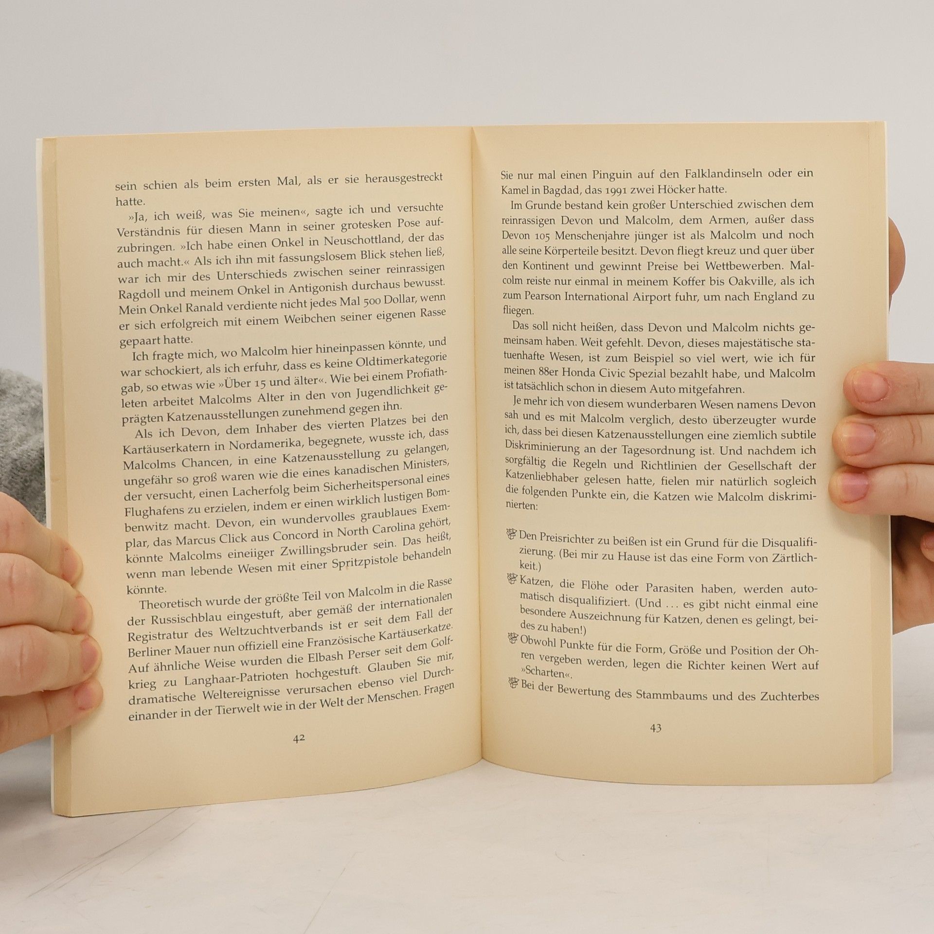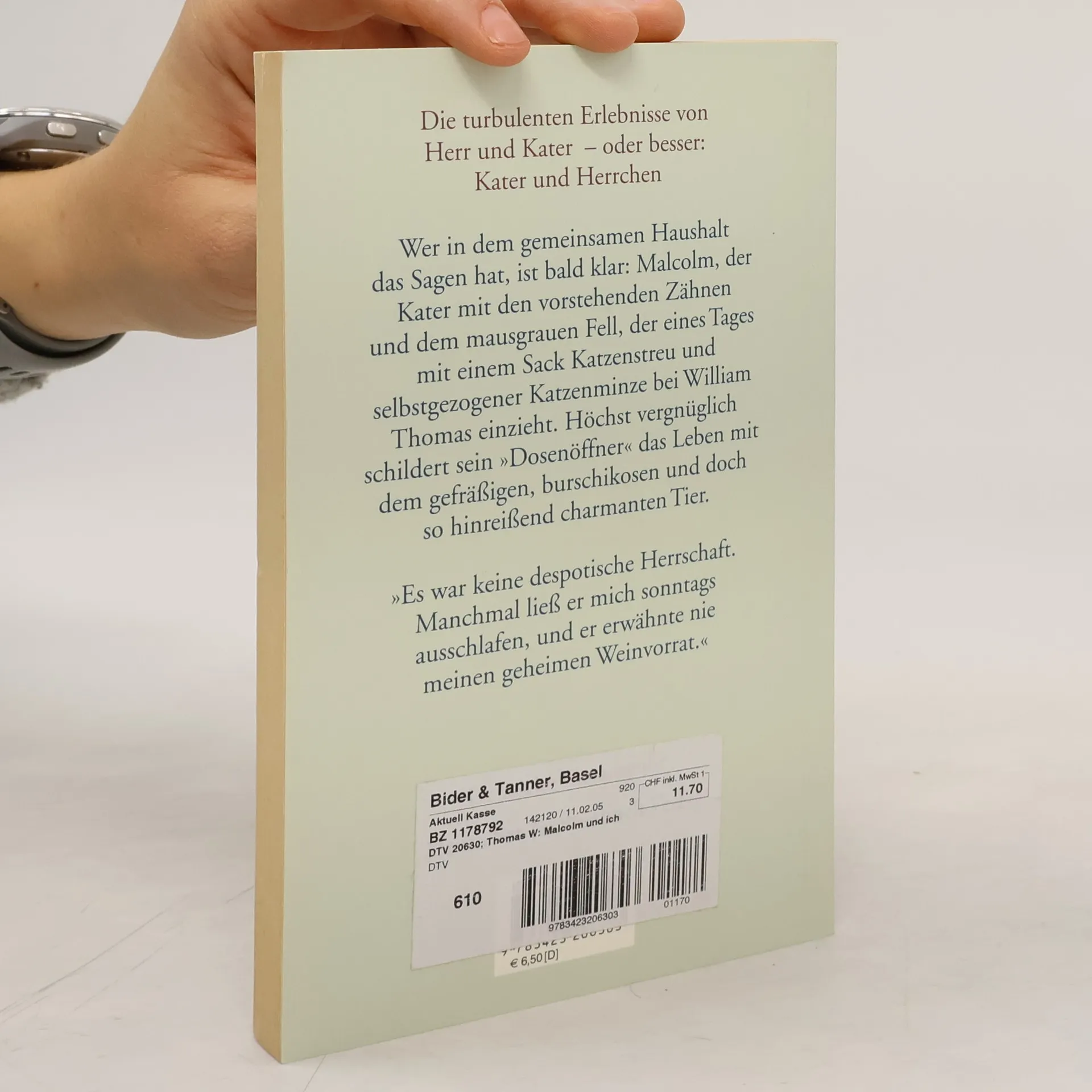 Die Erlebnisse von Herr und Kater – oder besser: Kater und Herrchen Nach seiner Scheidung bleibt dem Autor William Thomas als einziger Mitbewohner der Kater Malcolm. Dabei kann er Katzen eigentlich nicht ausstehen und hatte den Kater nur seiner Frau zuliebe aufgenommen. Das Zusammenleben mit dem charakterstarken, eigensinnigen Tier gestaltet sich in der Folge höchst abwechslungsreich, und schon bald wird klar, wer hier das Sagen hat. Malcolm liebt die frühen Morgenstunden, ganz im Gegensatz zu seinem Herrchen, findet fast alles fressbar – bis auf Glas, Polyester und Tiere, die größer sind als er selbst – und hat in kurzer Zeit den Haushalt fest im Griff. 18 Jahre währt dieses turbulente Zusammenleben, das Thomas höchst unterhaltsam und mit viel trockenem Humor beschreibt.