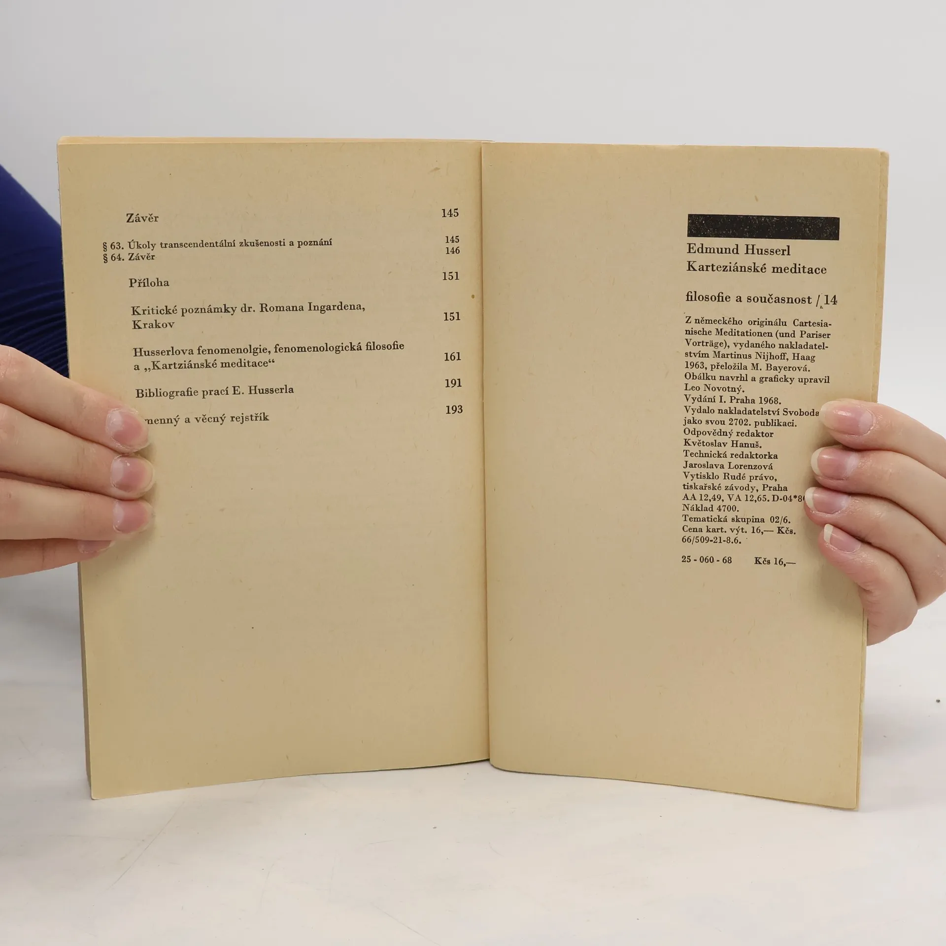 Kniha zakladatele moderní fenomenologie vznikla z přednášek, které uskutečnil na Sorbonně a Štrasburku v roce 1929. Karteziánské meditace navazují organicky na Husserlův hlavní vzor Reného Descarta a jeho Meditace o prvotní filozofii. Sám autor je považuje za vcelku povedený souhrn své vlastnífilozofie. Vedle dalších jeho pokusů o systematické vyložení fenomenologického systému je tento pokus snad nejhutnější a nejpregnantnější. Doslov Jan Patočka.