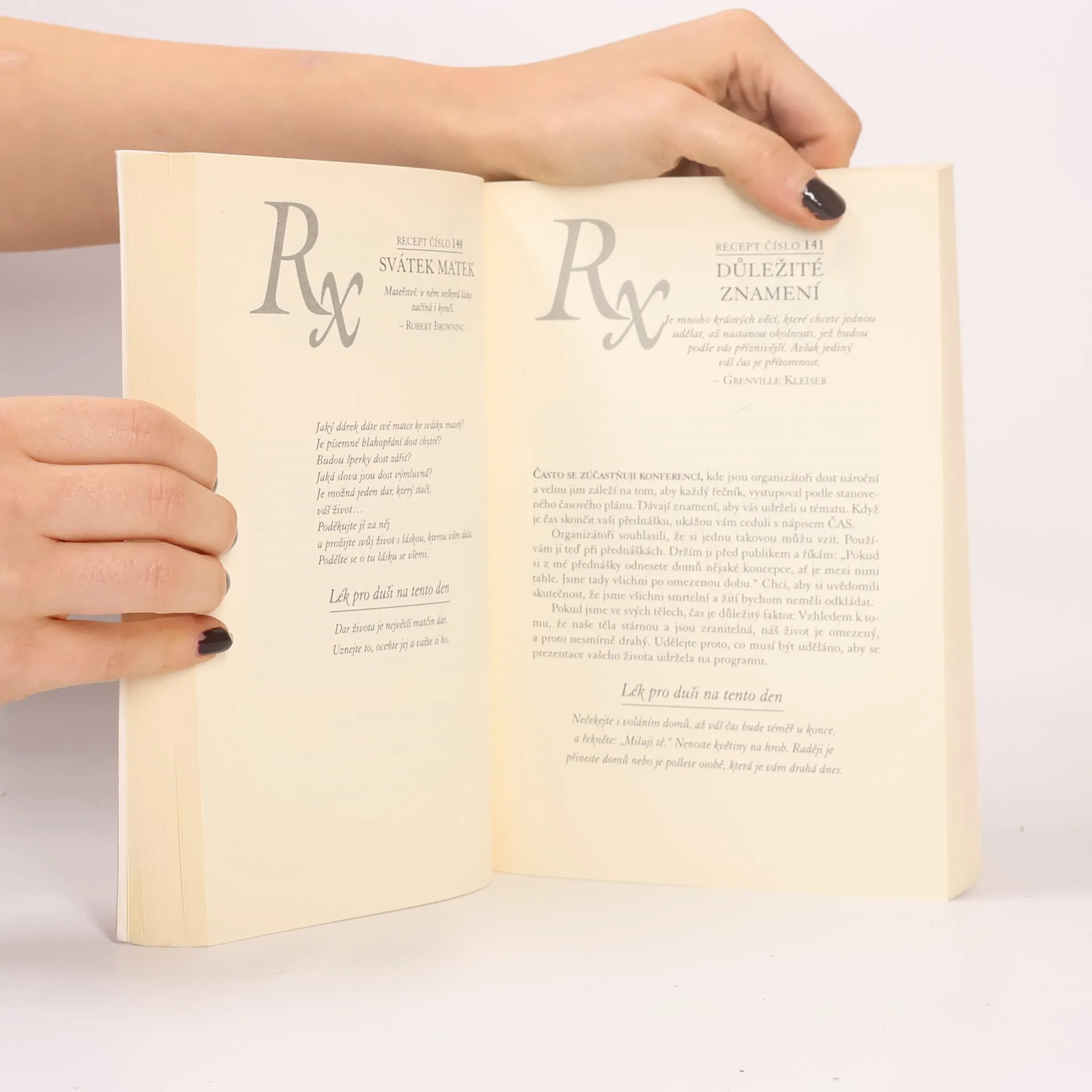 Toto poselství inspirace, naděje a lásky pro každý den je napsáno s humornou, zemitou moudrostí, která zlepšila život mnoha čtenářů. Recepty obsažené v této knize jsou malá zrnka moudrosti předkládaná přístupným způsobem, jenž snadno zapadá do našeho rušného života. Každodenní příspěvky vás povedou klidně, mile a uvědoměle životními výzvami a připraví vás na všechno, co se ve vašem životě může náhodou objevit. V dnešní zmechanizované společnosti každý čelí ve svém životě překážkám. Ti, kterým se podaří je překonat, se během tohoto procesu něco naučí