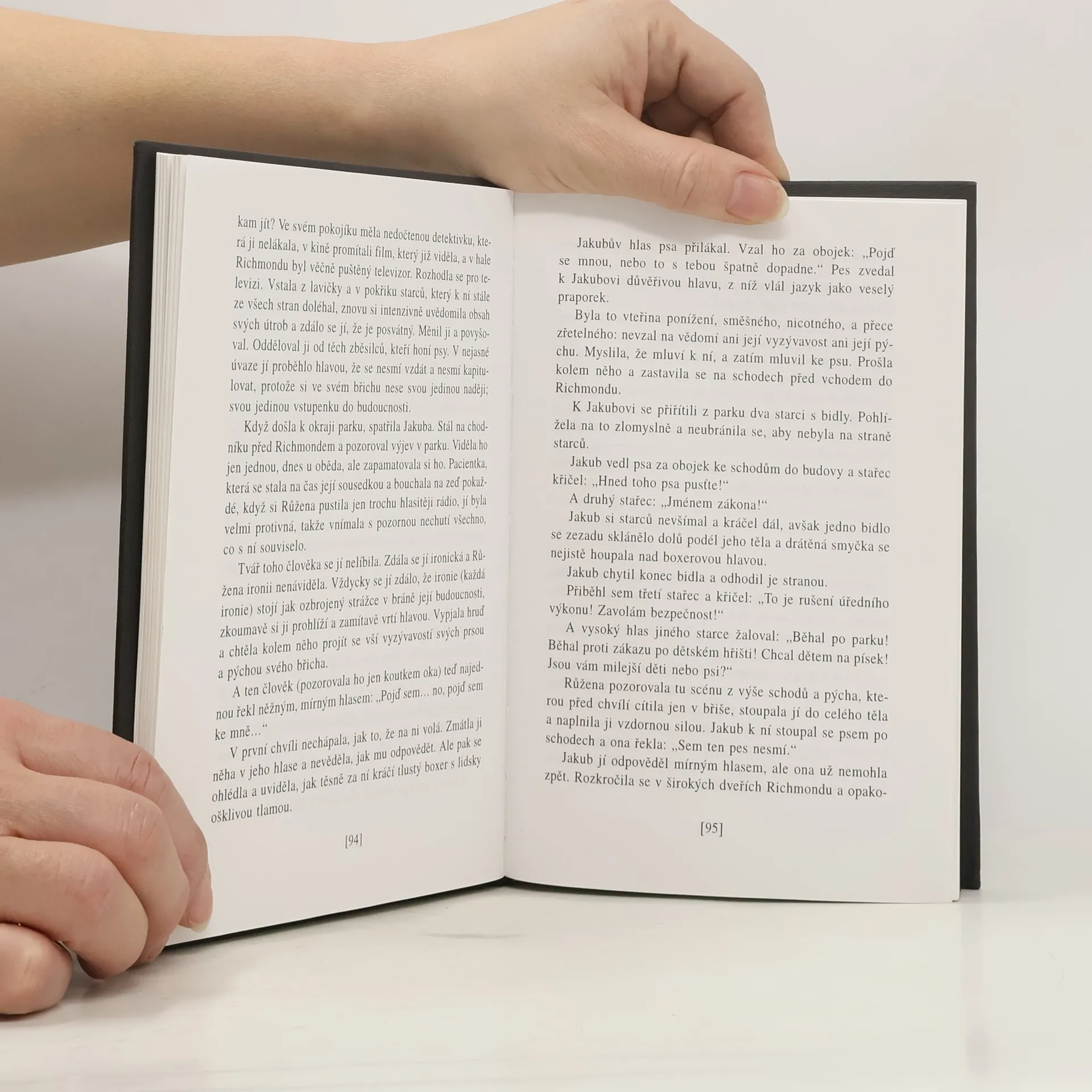 Do této černé románové frašky svedl autor několik postav: těhotnou svobodnou zdravotní sestru, jejího ženatého milence muzikanta, jeho krásnou a žárlivou ženu, honbu na zatoulané psy, výjev před potratovou komisí, mladou Američanku toužící po dítěti a jejího manžela stiženého strachem ze smrti, dále českého gynekologa, který domněle neplodné pacientky v lázních léčí injektováním svého vlastního semene, zakládá tím sbratření lidstva a za službu prokázanou zmíněným Američanům požádá, aby ho adoptovali a umožnili mu tím výjezd za hranice, a konečně někdejšího politického vězně, z něhož se těsně před legální emigrací stane vrah.