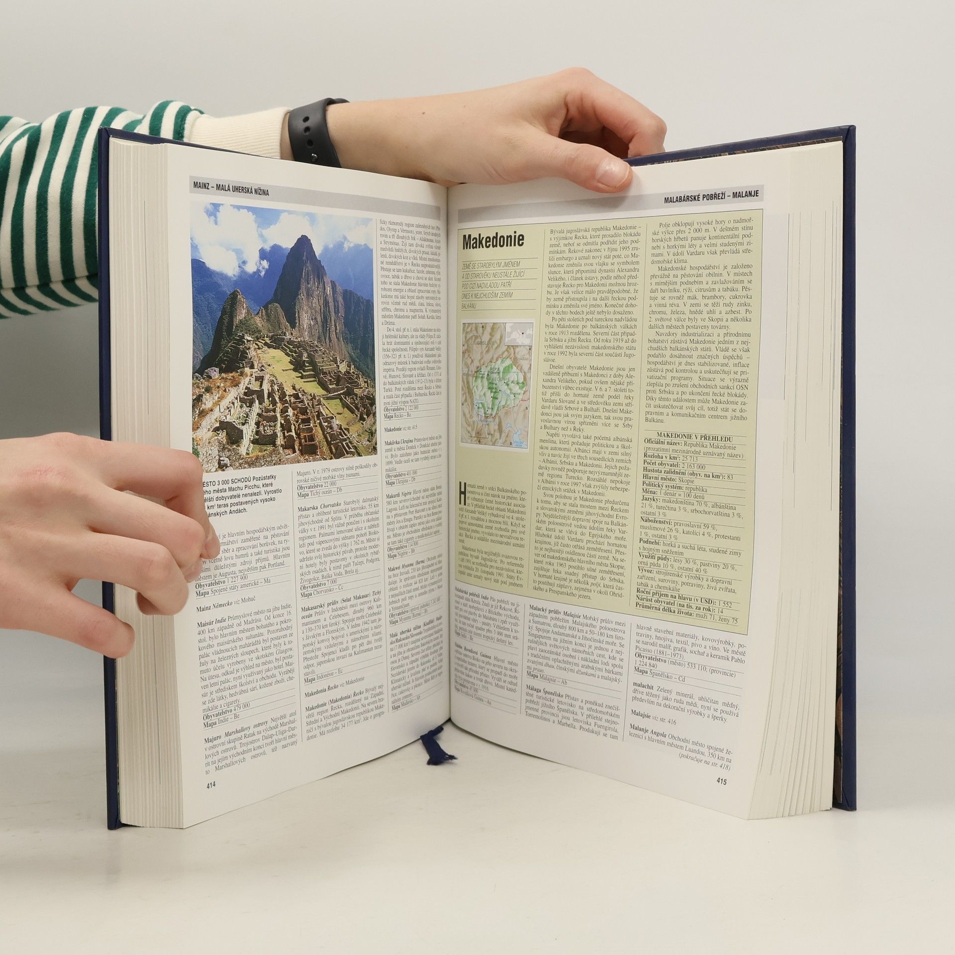 Dočtete se v ní o více než 6 500 pamětihodností naší planety, a to jak přírodních, tak vytvořených člověkem. Získáte správné povědomí o tom, kde leží místa, o kterých se hovoří v denních zprávách, kde se nacházejí oblasti, které přitahují mimořádný zájem turistů, kraje, které často postihují přírodní neštěstí, nebo významná naleziště přírodních zdrojů. Najdete zde například odpověď na otázky: Jak žijí lidé v různých částech světa a jaká je jejich kultura a tradice? Jaký mají ekonomický potenciál jednotlivé země a jejich hlavní města a jací jsou lidé, kteří v nich žijí? Která jsou nejméně probádaná místa na Zemi? Proč a jak vzniká orkán? Kde se nacházejí nejvyšší a nejširší vodopády? Jak vznikly neuvěřitelné památky z dob dávných civilizací? Knížka obsahuje: více než 250 barevných vyobrazení, 174 barevných map, popis 193 zemí, 7 500 hesel. Vydání druhé... celý text
