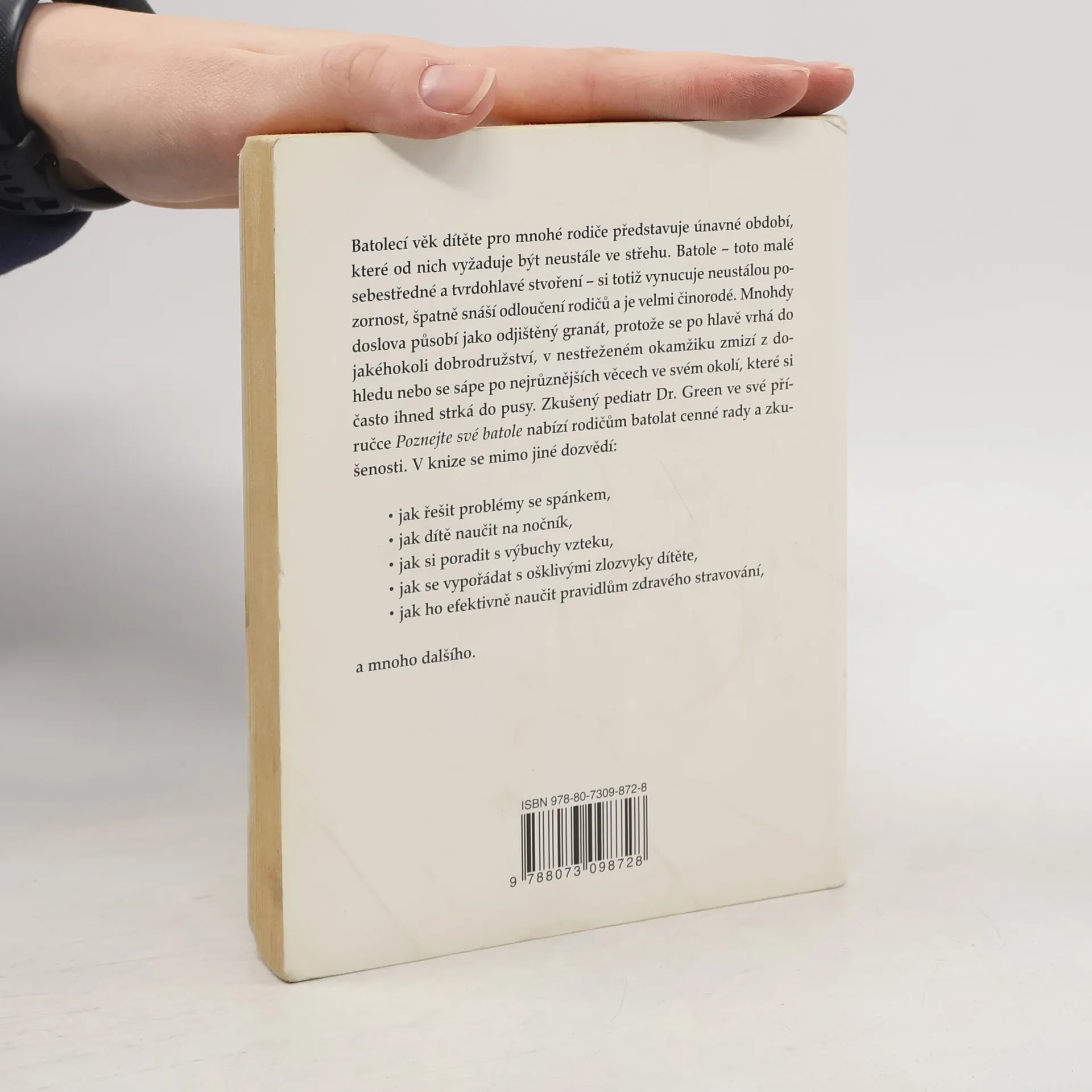 Batolecí věk dítěte pro mnohé rodiče představuje únavné období, které od nich vyžaduje být neustále ve střehu. Batole - toto malé sebestředné a tvrdohlavé stvoření - si totiž vynucuje neustálou pozornost, špatně snáší odloučení rodičů a je velmi činorodé. Zkušený pediatr Dr.Green ve sé příruče nabízí rodičům batolat cenné rady a zkušenosti. V knize se mimo jiné dovědí, jak řešit problémy se spánkem, jak dítě naučit na nočník, jak si poradit s výbuchy vzteku nebo jak se vypořádat se zlozvyky.