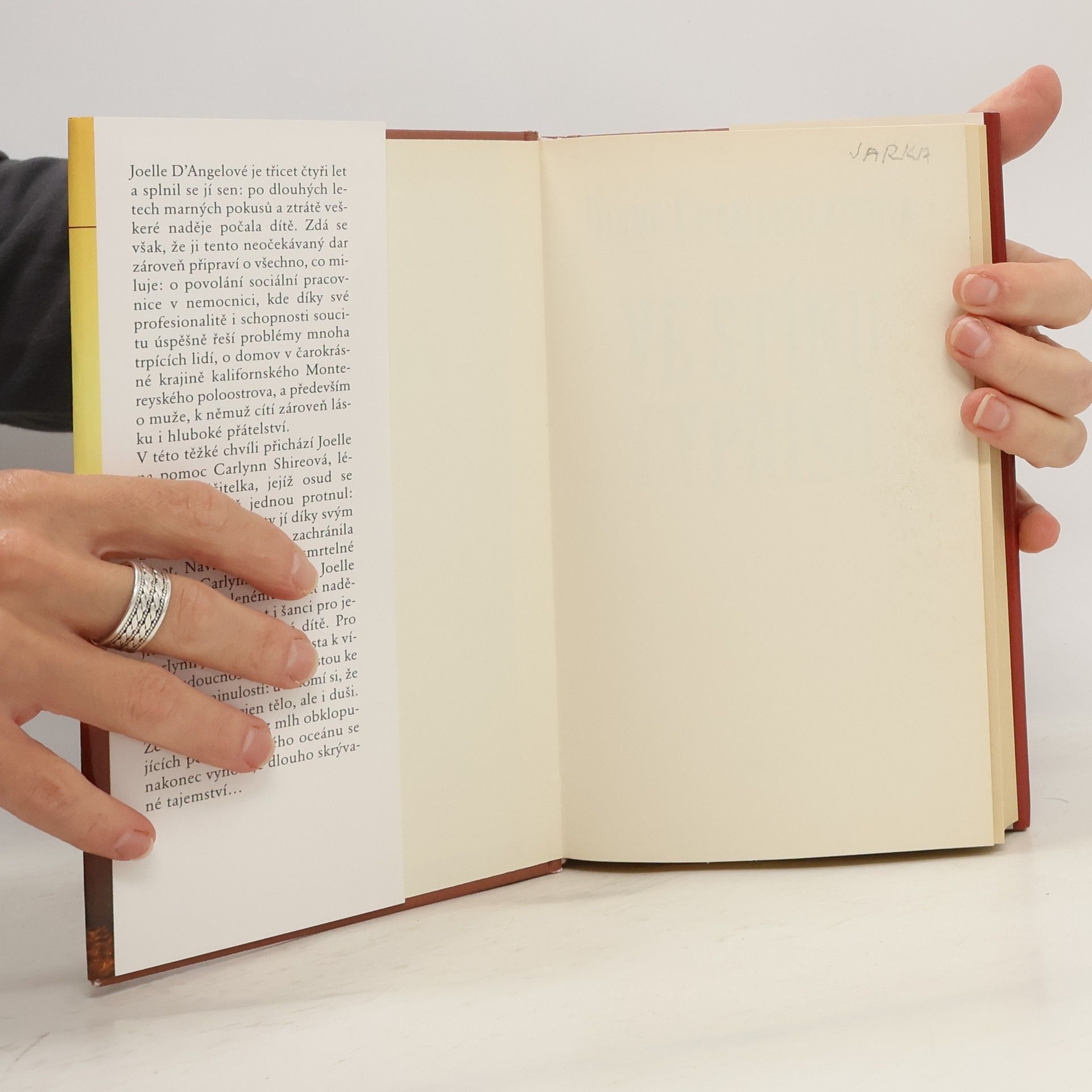 Joelle D'Angelové je třicet čtyři let a splnil se jí sen: po dlouhých letech marných pokusů a ztrátě veškeré naděje počala dítě. Zdá se však, že ji tento neočekávaný dar zároveň připraví o všechno, co miluje: o povolání sociální pracovnice v nemocnici, o domov v čarokrásné krajině kalifornského Montereyského poloostrova, a především o muže, k němuž cítí zároveň lásku i hluboké přátelství. V této chvíli přichází Joelle na pomoc Carlynn Shireová, lékařka a léčitelka, jejíž osud se s Joelliným již jednou protnul: před čtyřiatřiceti lety jí díky svým zvláštním schopnostem zachránila život. Navzdory stáří a smrtelné nemoci Carlynn pomáhá Joelle a jejímu vyvolenému získat naději na společný život i naději pro jejich dosud nenarozené dítě. Pro Carlynn je však Joellina cesta k víře v budoucnost zároveň cestou ke smíření s minulostí. Ze stínu cypřišů a z mlh obklopujících pobřeží Tichého oceánu se nakonec vynořuje dlouho skrývané tajemství