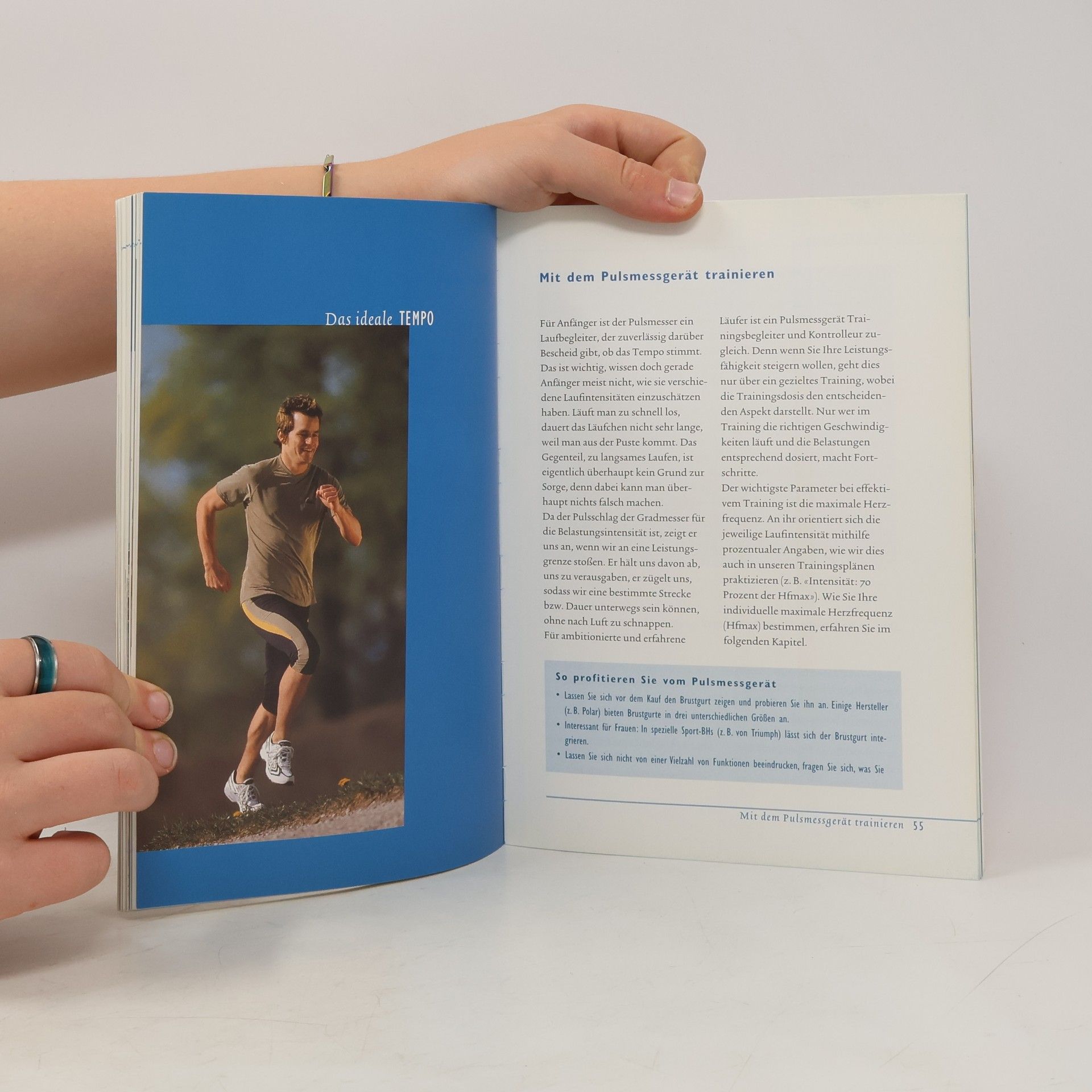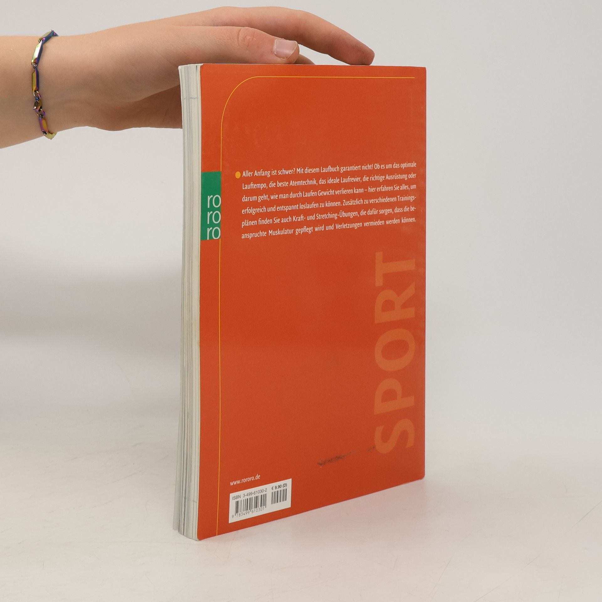 Wer schon zigmal mit dem Laufen beginnen wollte, nie den Dreh fand und von keinem der vielen, vielen Laufbücher ausreichend animiert wurde, hat vielleicht mit diesem Titel Erfolg. Die 2 Redakteure der Laufzeitschrift "Runner's World" beschreiben Laufschuhe und Bekleidung für jede Jahreszeit, Laufstil und -tempo, Intervalltraining. Sie bewerben die Tauglichkeit verschiedener Laufuntergründe, geben Extratipps für Frauen, zeigen Stretch- und Kraftübungen. Die 7 Trainingspläne über mehrere Wochen gibt es für blutige Anfänger bis zu Marathonteilnehmern. Abschließend werden häufige Laufbeschwerden und deren Kurierung beschrieben. Gutes Layout mit animierenden Farbfotos. Leider fehlen Hinweise zur Ernährung ebenso wie Register, Glossar, weiterführende Literaturangaben und Adressen