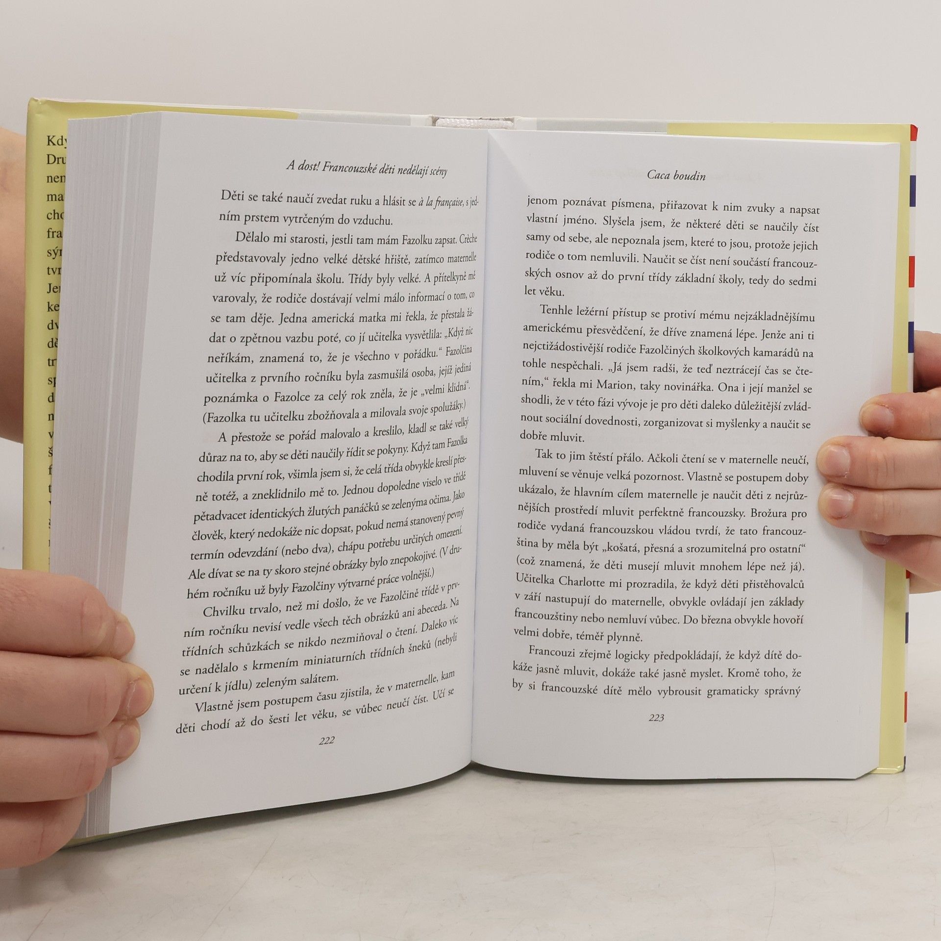 Toužíte vychovat vyrovnané, soběstačné a spokojené dítě? Inspirujte se francouzským způsobem výchovy dětí, který ve své vtipné a výstižné knize popsala americká žurnalistka Pamela Druckermanová. Když se americké novinářce Pamele Druckermanové narodilo v Paříži dítě, neměla v úmyslu stát se „francouzskou matkou“. Koneckonců, přístup k výchově není nějaká „věc“, jako třeba francouzská móda nebo francouzský sýr. Dokonce i sami francouzští rodiče tvrdí, že nedělají nic zvláštního. Jenže francouzské děti, které Druckermanová poznala, spaly celou noc ve dvou nebo třech měsících, zatímco dětem jejích amerických přítelkyň to trvalo rok nebo i déle. Francouzské děti spořádaně jedly zdravá jídla, která daleko častěji obsahovala dušený pórek než kuřecí nugety. Když přišli na návštěvu američtí přátelé, většinu času řešili problémy svých ratolestí, kdežto ti francouzští v klidu upíjeli kávu, zatímco si děti hrály. Autorka se proto rozhodla odhalit tajemství francouzské výchovy. Zjistila, že francouzští otcové a matky jsou mimořádně přísní v několika málo věcech, ale ve všem ostatním nechávají potomkům celkem volnou ruku. A uvědomila si, že aby se člověk naučil vychovávat děti jinak, nepotřebuje jinou rodičovskou filozofii. Potřebuje úplně jiný náhled na to, co jsou děti zač. A když se sama naučila pevně říkat NE, zjistila, že děti – včetně jejích vlastních – dokážou věci, jaké si vůbec neuměla představit.