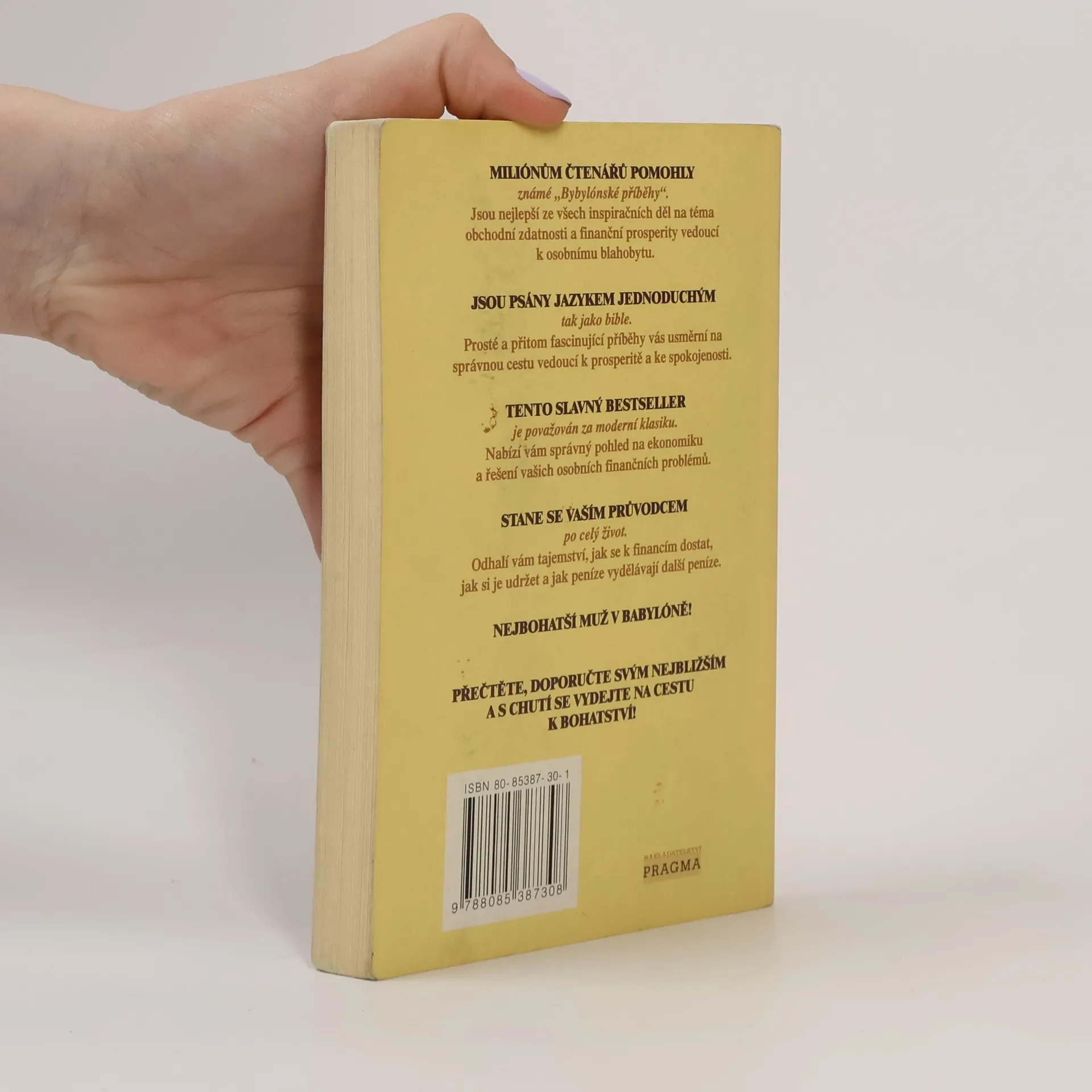 Nejlepší kniha, která kdy byla napsána na téma bohatství. Je vynikající inspirací a návodem, jak zbohatnout! Nejlepší ze všech inspiračních děl na téma obchodní zdatnosti a finanční prosperity vedoucí k osobnímu blahobytu. Prosté a přitom fascinující příběhy vás usměrní na správnoucestu vedoucí k úspěchu a ke spokojenosti, nabídnou vám správný pohled na ekonomiku a řešení vašich osobních problémů.Odhalí vám tajemství, jak se k financím dostat, jak si je udržet a jak peníze vydělávají další peníze.