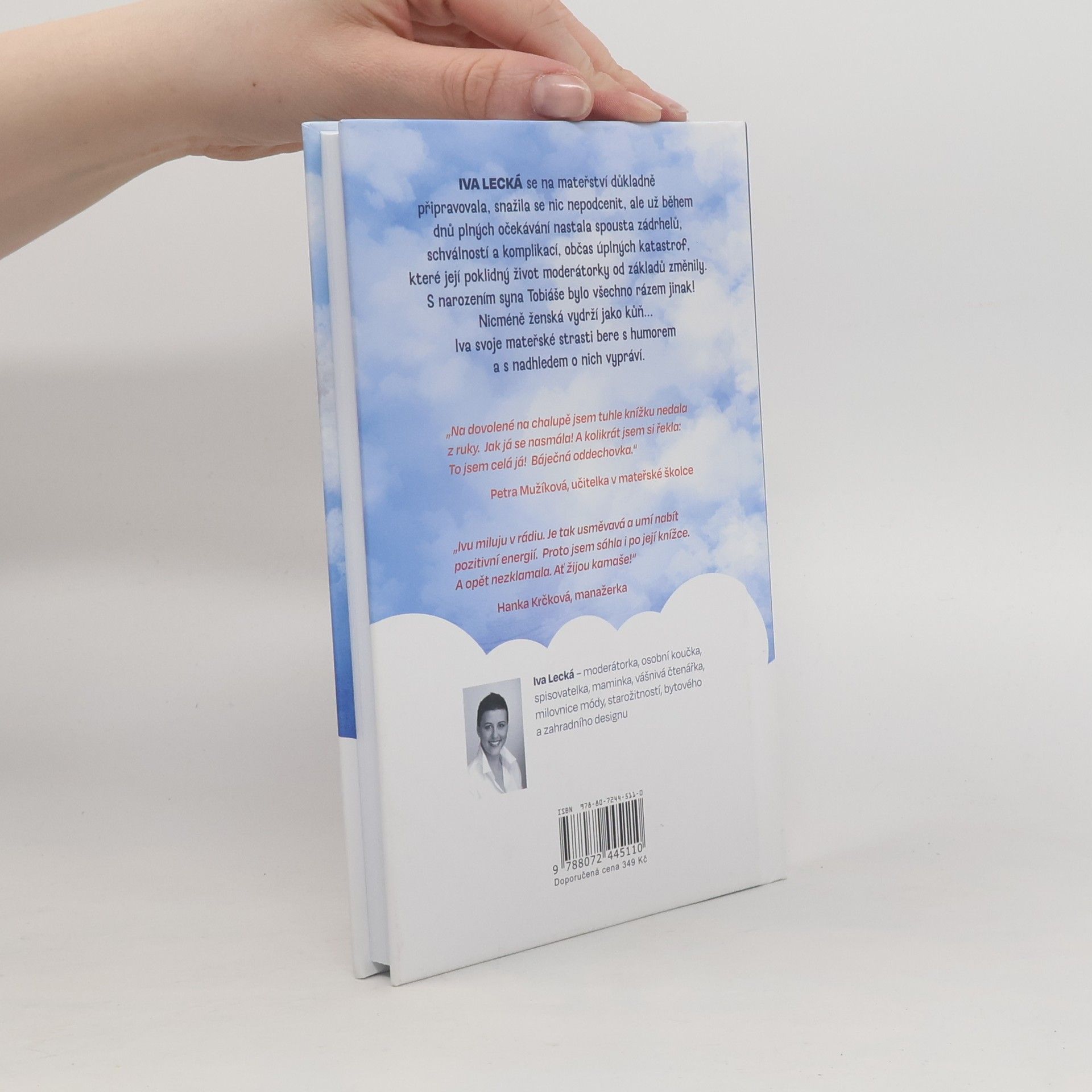 Iva Lecká se na mateřství důkladně připravovala, snažila se nic nepodcenit, ale už během dnů plných očekávání nastala spousta zádrhelů, schválností a komplikací, občas úplných katastrof, které její poklidný život moderátorky od základů změnily. S narozením syna Tobiáše bylo všechno rázem jinak! Iva svoje mateřské strasti beres humorem a s nadhledem o nich vypráví. Posláním této knížky je navodit pohodu, vykouzlit úsměv a ukázat, že život se má brát s humorem a že všechno jde, když se chce… a že ženská nakonec vydrží jako kůň! Obálku nového vydání ilustrovala Bibi Hykl, sestra Ivy Lecké.