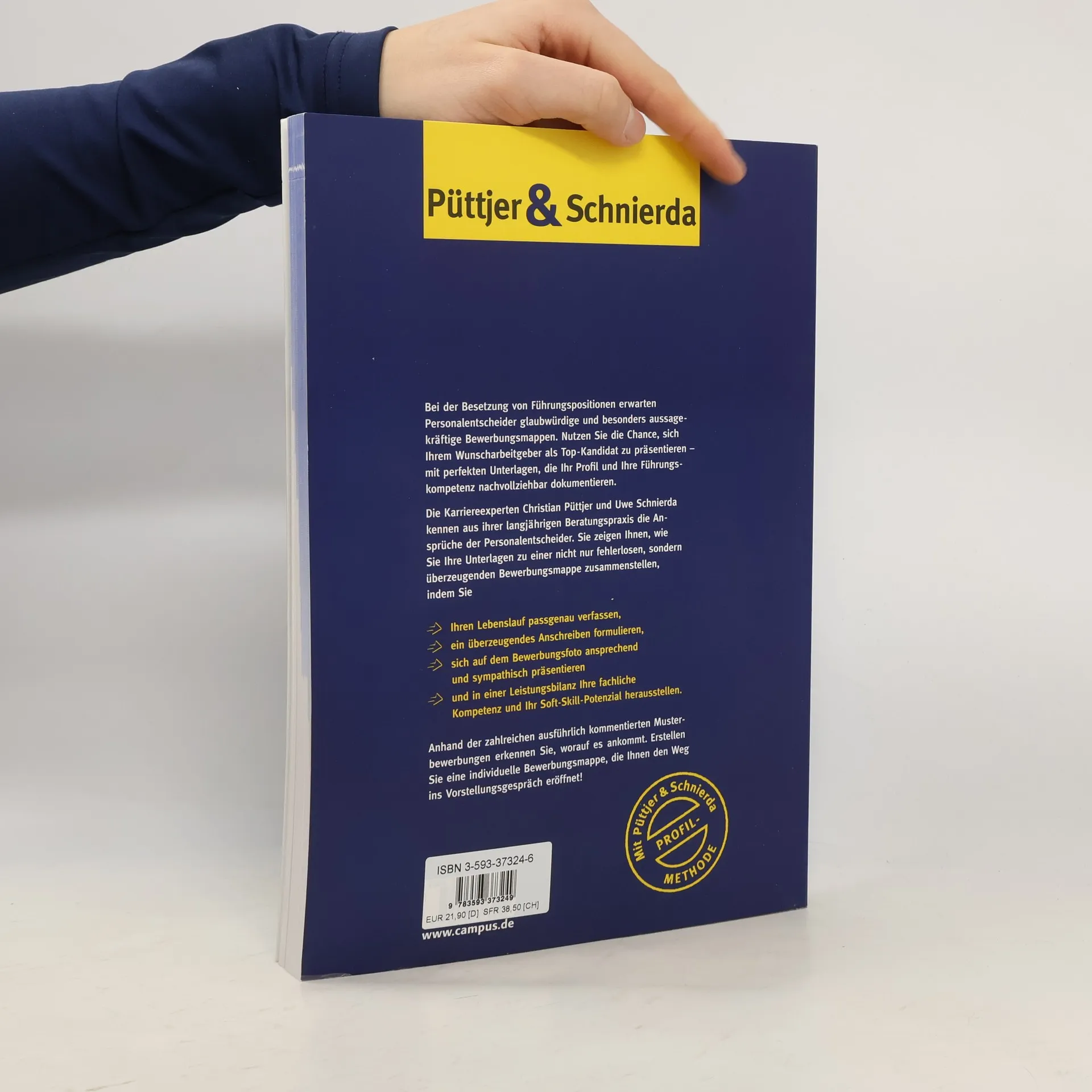 Püttjer und Schnierda erklären, was Personalentscheider bei ihrer sekundenschnellen Beurteilung von Anschreiben, Lebenslauf, Foto und Leistungsbilanz besonders kritisch prüfen. Sie kommentieren zahlreiche Unterlagen aus ihrer Beratungspraxis ausführlich und zeigen, wie man sich mithilfe der Profil-Methode aus der Masse der Bewerber heraushebt. Völlig neu und charakteristisch für diese neue Generation von Bewerbungsmappen ist dabei das besonders anschauliche Nebeneinander von Musterbewerbung und Kommentierung auf einer Doppelseite.